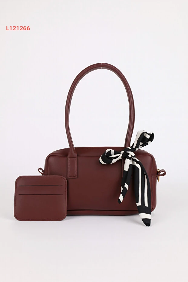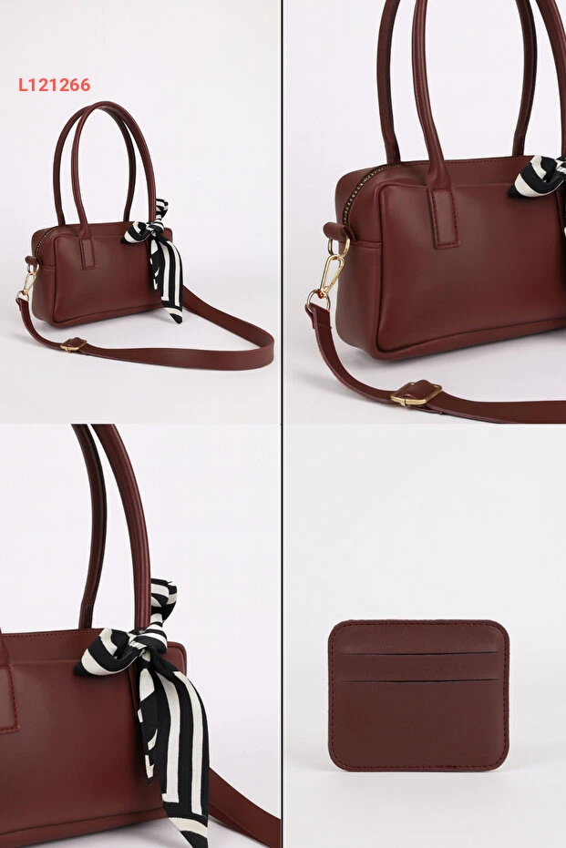 حقيبة يد وكتف موري للسيدات بورجوندي مع حافظة بطاقات ووشاح قابل للتعديل