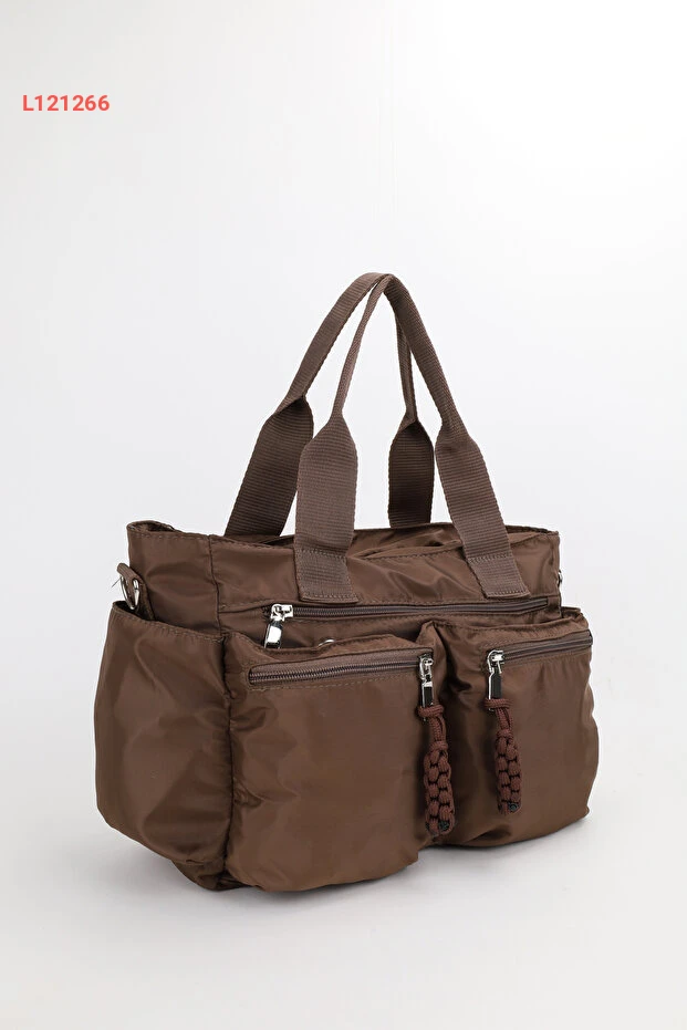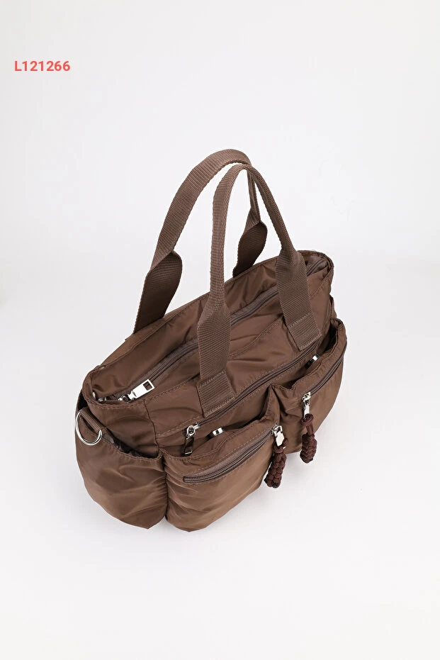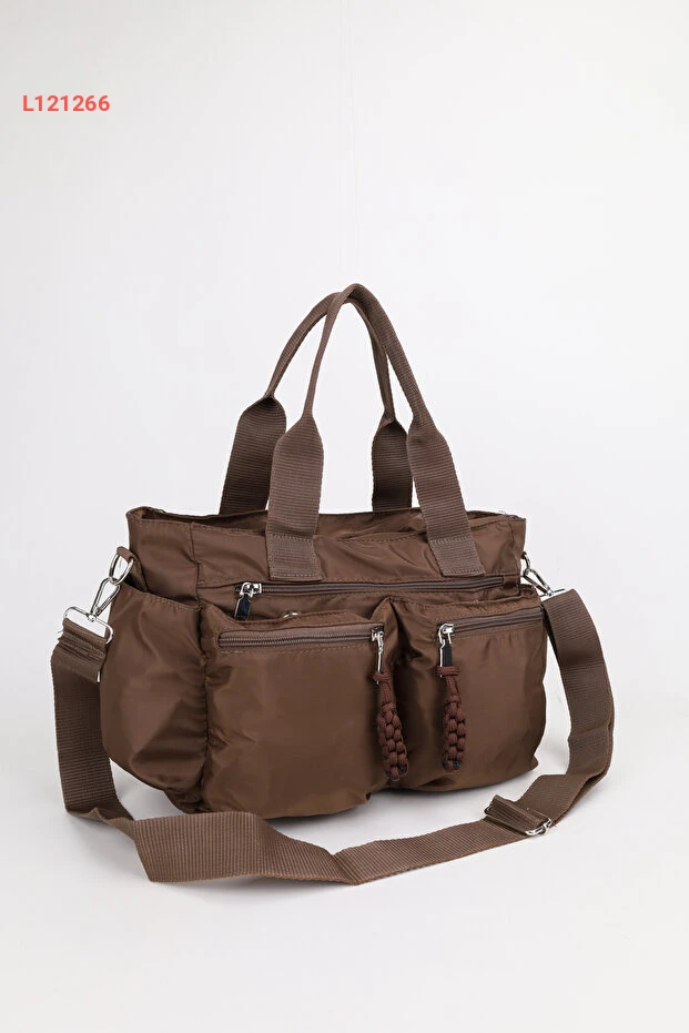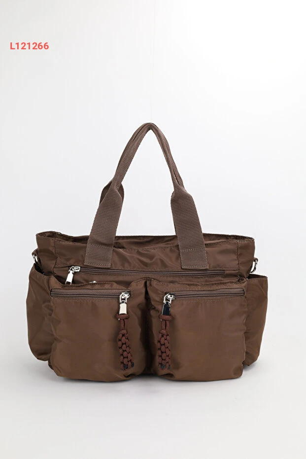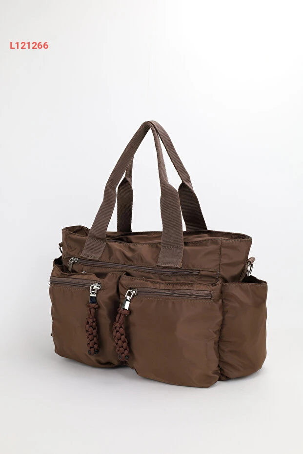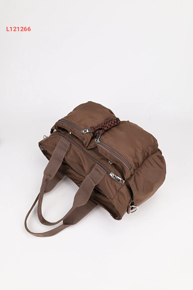 حقيبة بيرا متعددة الجيوب للظهر والكتف من قماش باراشوت بني