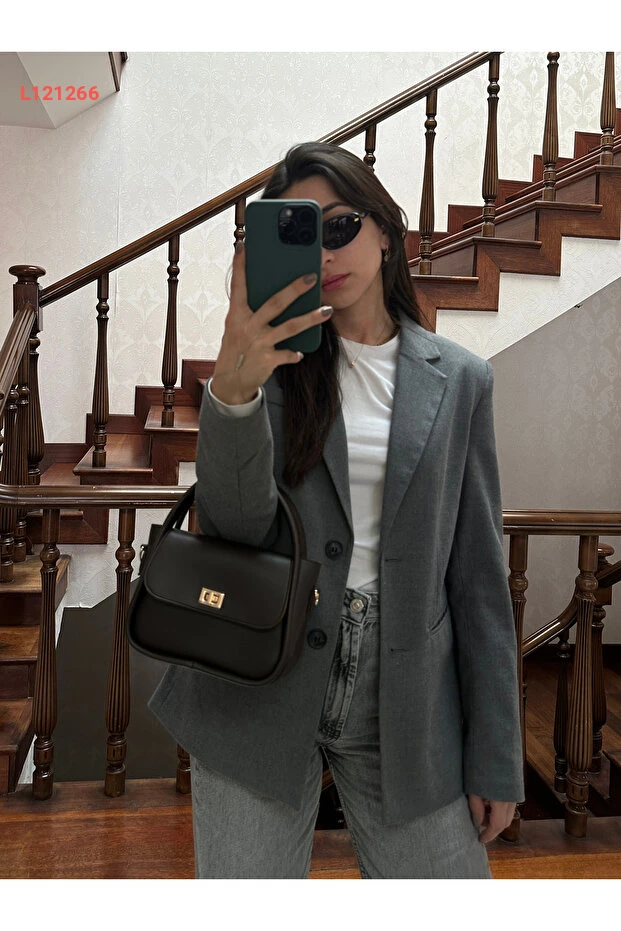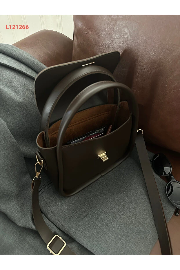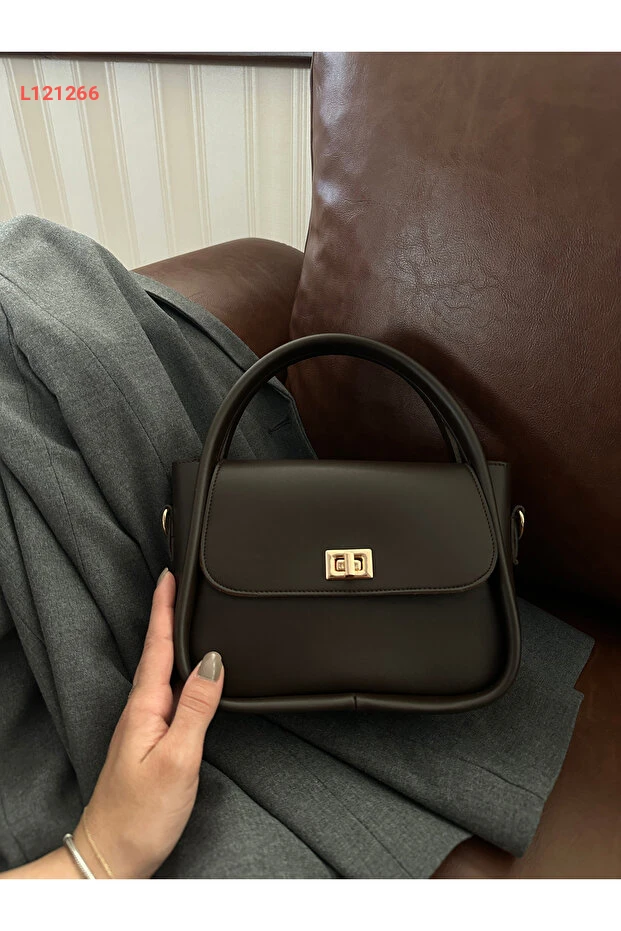 حقيبة مونا النسائية البنية القابلة للتعديل بتفاصيل قفل ذهبية