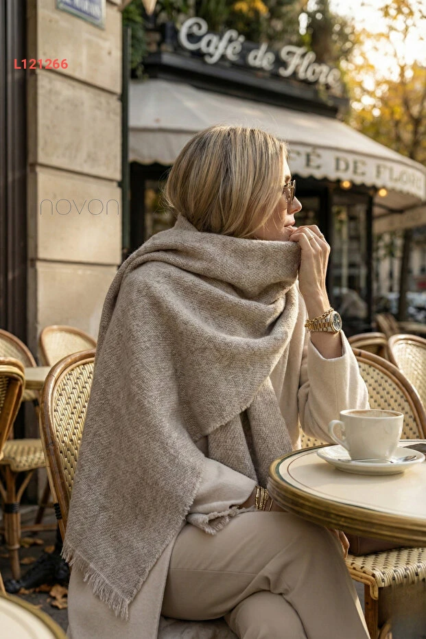استمتع بالدفء والأناقة مع شال نوفون الفاخر الذي يجمع بين نعومة الملمس الغير مسبوقة وتصميمه العصري. مصنوع من نسيج صوف عالي الجودة، يمتاز بتفاصيل الدانتيل الرقيقة ولون رملي شبيه بلون الكوارتز، ليمنحك لمسة من الأناقة في كل إطلالة شتوية. استعد لتكون محط الأنظار حيث يتكامل هذا الشال مع جميع أزيائك بسلاسة.