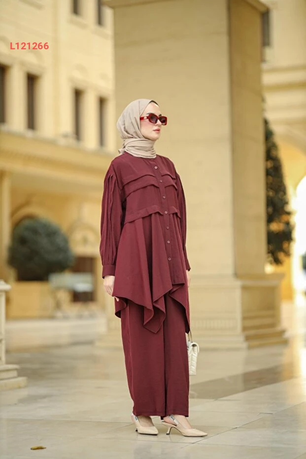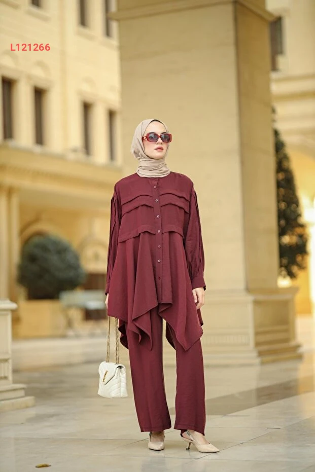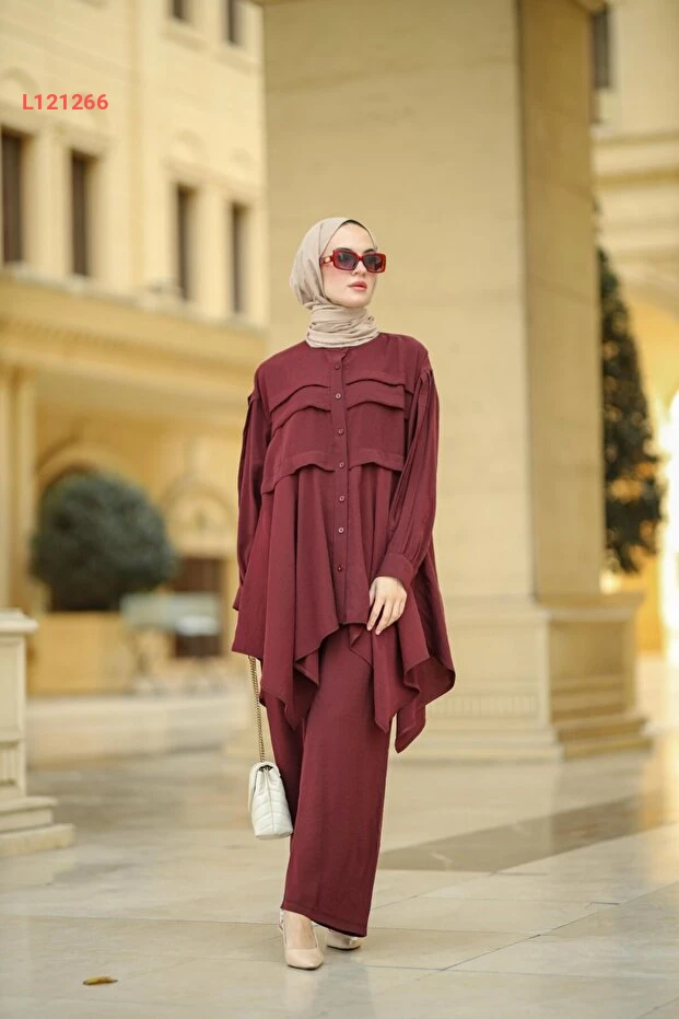 استمتعي بأناقة لا مثيل لها مع طقم زرده من NS Moda في لون بورغندي الرائع. يجمع هذا الطقم بين التصميم العصري والراحة المطلقة، مما يجعله الخيار المثالي لمناسباتك الخاصة واليومية. احصلي على إطلالة مميزة تعكس ذوقك الرفيع وتبرز جمالك بأسلوب معاصر ومحتشم.
