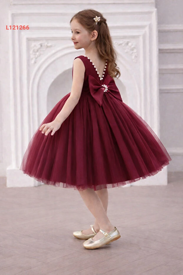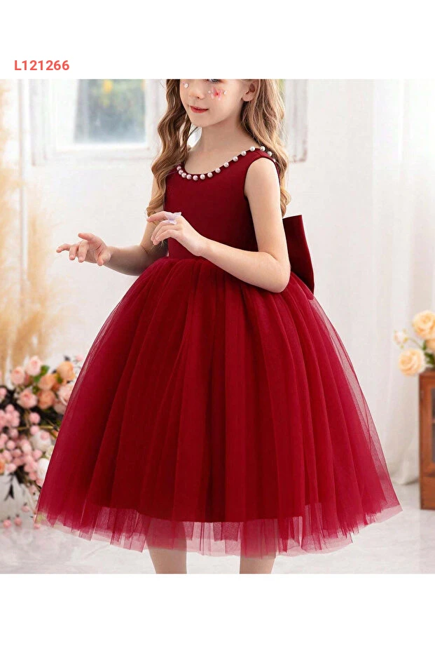 فستان عيد الميلاد المزين باللؤلؤ للبنات بتصميم البنفسجية