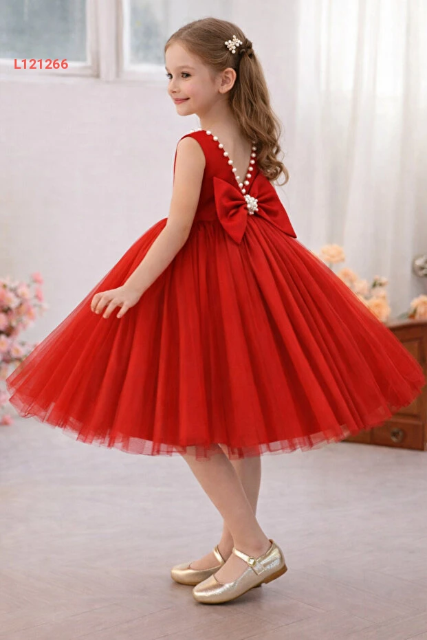 فستان بناتي بروبي بقلائد لؤلؤ للعيد والتخرج والمناسبات الخاصة