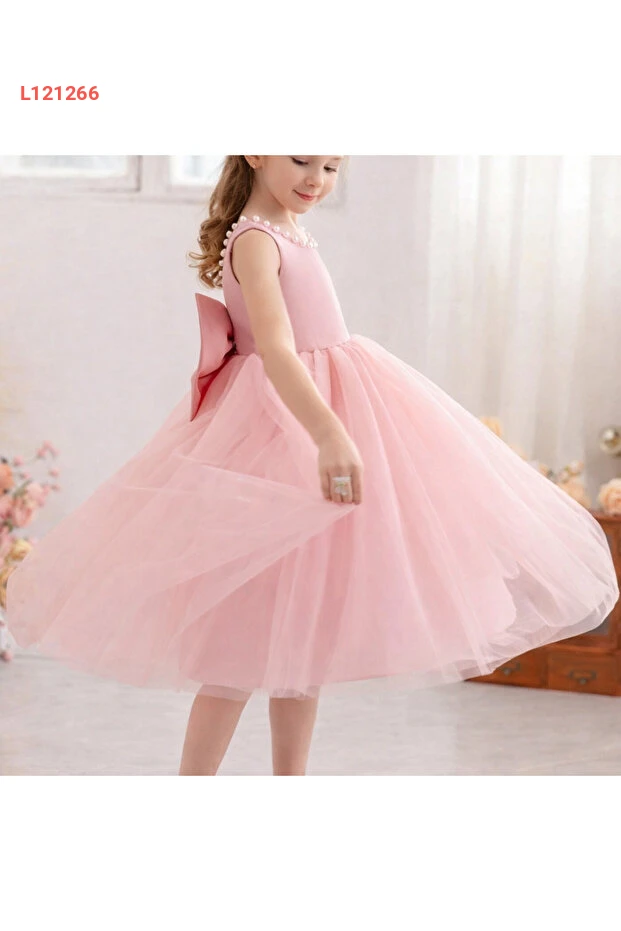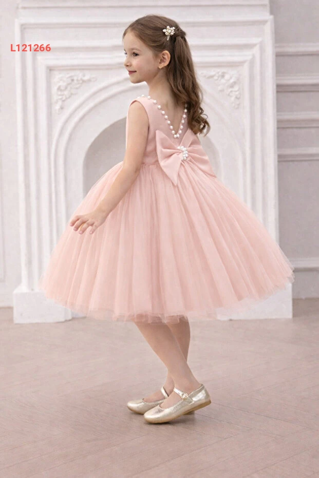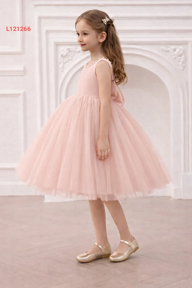 فستان بنات أنيق بتفاصيل لؤلؤية - نموذج بنفسجي لمناسبات خاصة
