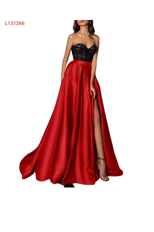 تنورة ساتان A-line مع تفاصيل شق أنيقة باللون الأحمر للنساء