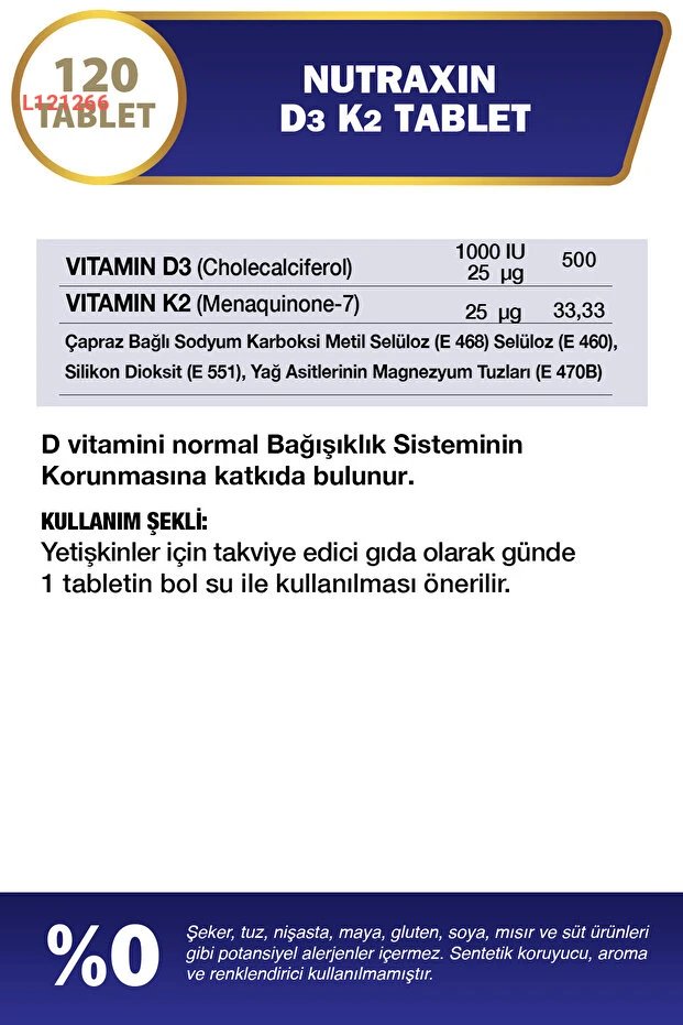 نوتراكسين دي 3 ك2 - مكمل غذائي 120 قرص يحتوي على 1000 وحدة دولية من فيتامين د3 و25 ميكروجرام من فيتامين ك2