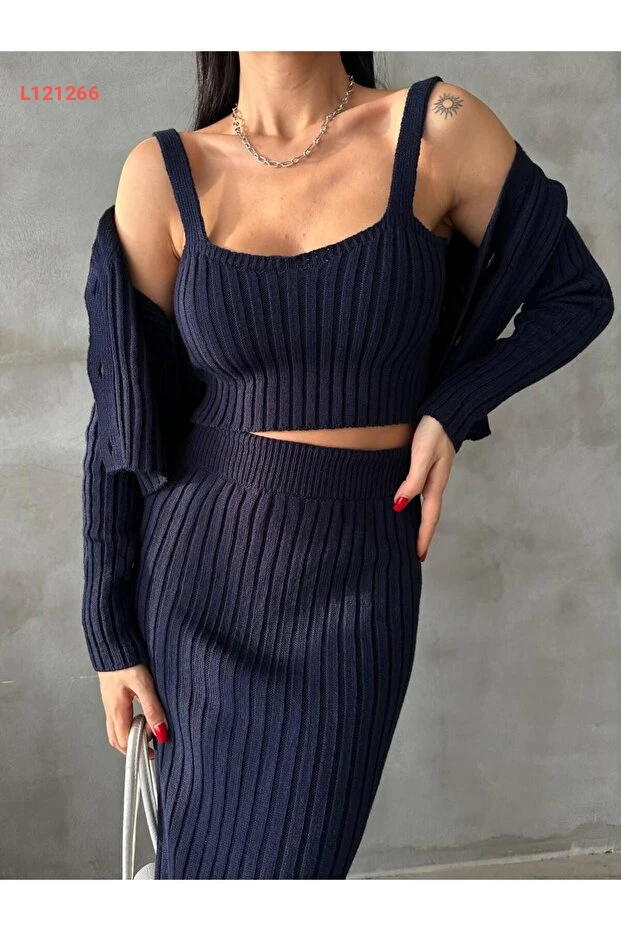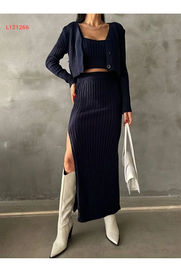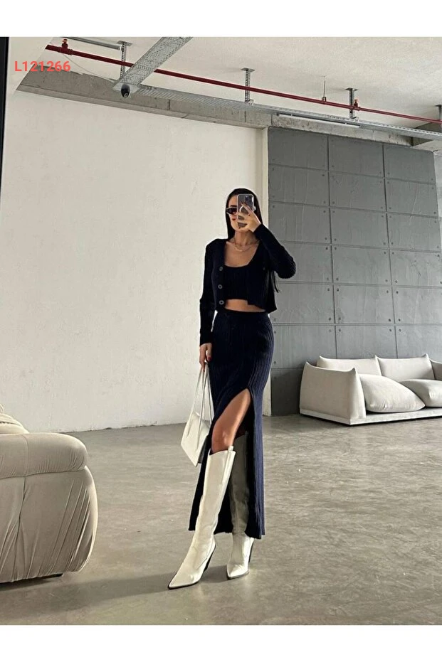 أضف لمسة من الأناقة إلى خزانتك مع مجموعة NZL TEKSTİL Dgn's المكونة من ثلاثة قطع: تنورة بفتحة زر مميزة وسترة بلوزة مطابقة. تتميز الأقمشة بجودة عالية وتفاصيل دقيقة، ما يجعل هذا الطقم مثاليًا لكل مناسبة، سواء كانت رسمية أو عادية. اعتمدي على هذه المجموعة لتظهري بأبهى حلة وثقة لا مثيل لها!