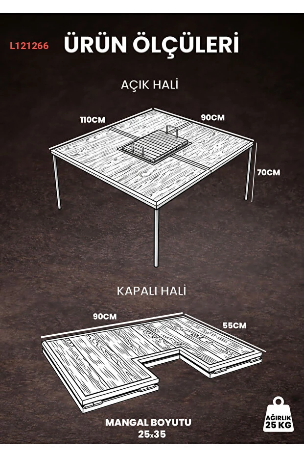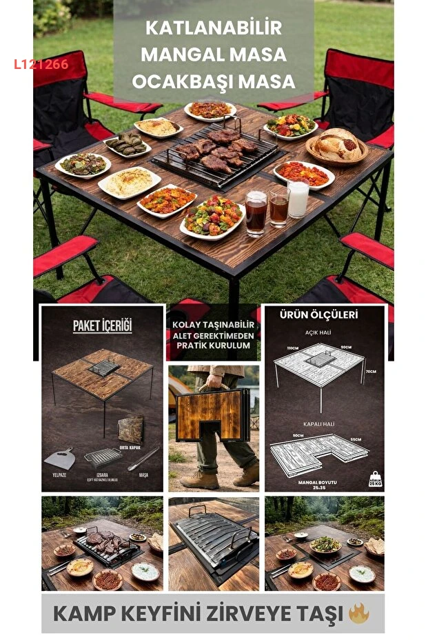 اكتشف متعة الشواء مع طاولة ODUNHERİF06 القابلة للطي! تجمع بين التصميم الأنيق والعملية، مما يجعلها الاختيار المثالي لجلسات الشواء في الهواء الطلق أو المناسبات العائلية. سهل الحمل والتخزين، توفر لك المساحة المثالية لإعداد أشهى الوجبات وسط أجواء مبهجة.