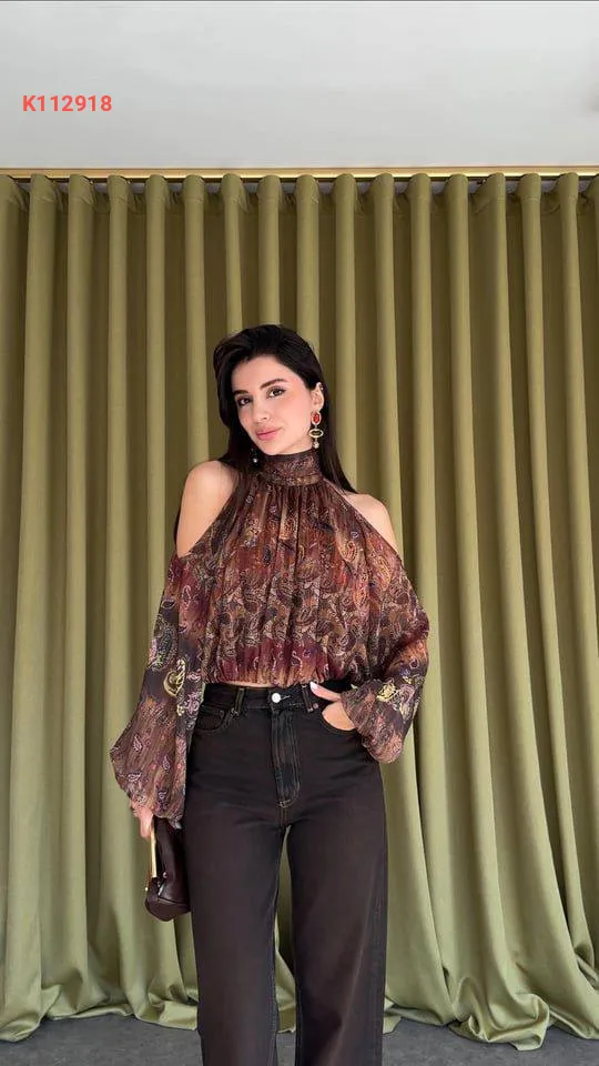بلوزة شيفون معرقة مكشوفة الأكتاف