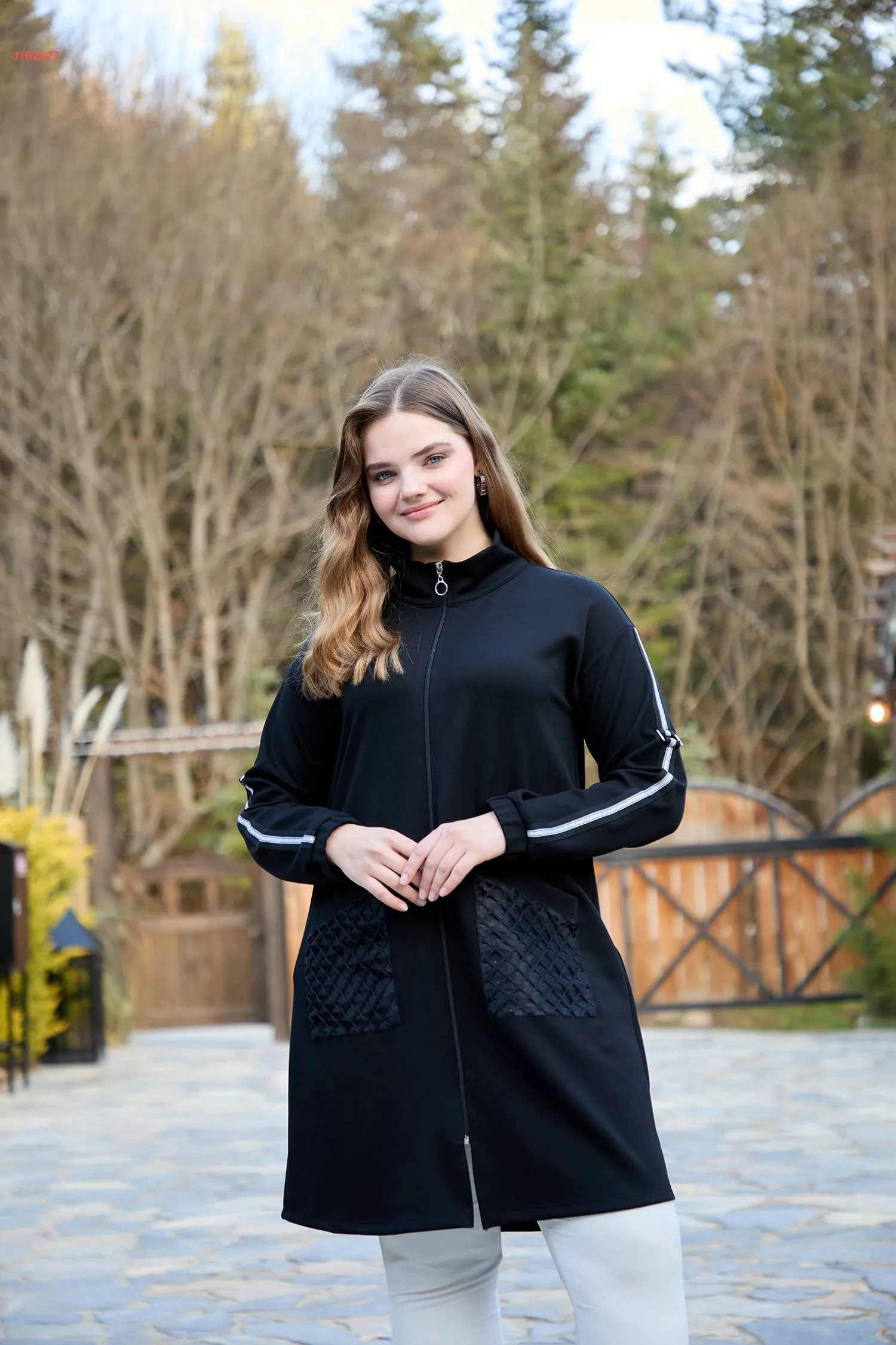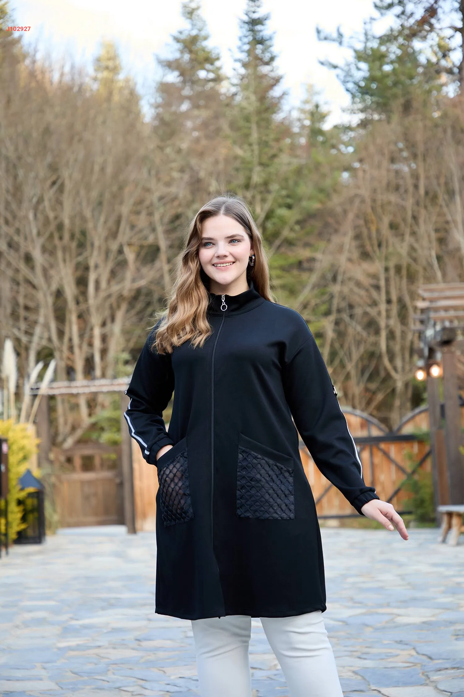جاكيت اويشو بسحاب وجيوب مفرغة