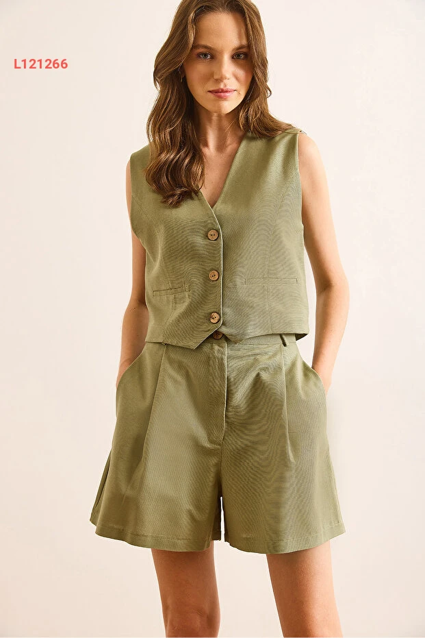 استمتعي بإطلالة عصرية ومريحة مع طقم Olalook الذي يتضمن سترة في لون أخضر فاتح أنيق وشورت بجيوب عملية. يتميز القماش بالنعومة وخفة الوزن، مما يجعله مثاليًا لفصول الصيف. اختاري هذا الطقم لتجتمي بين الأناقة والراحة في كل مناسبة!