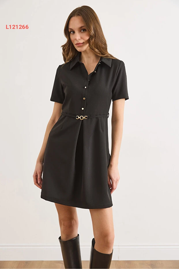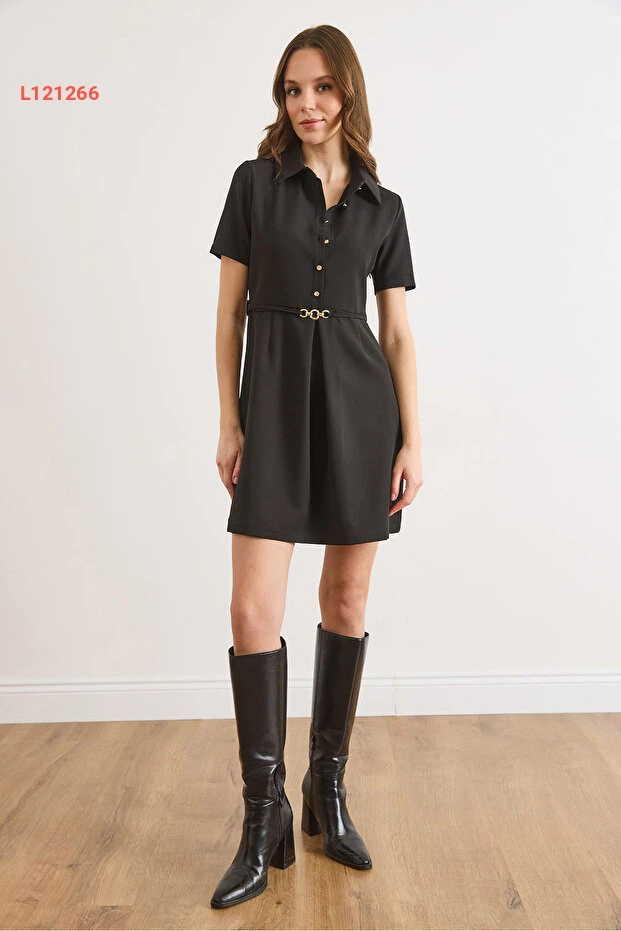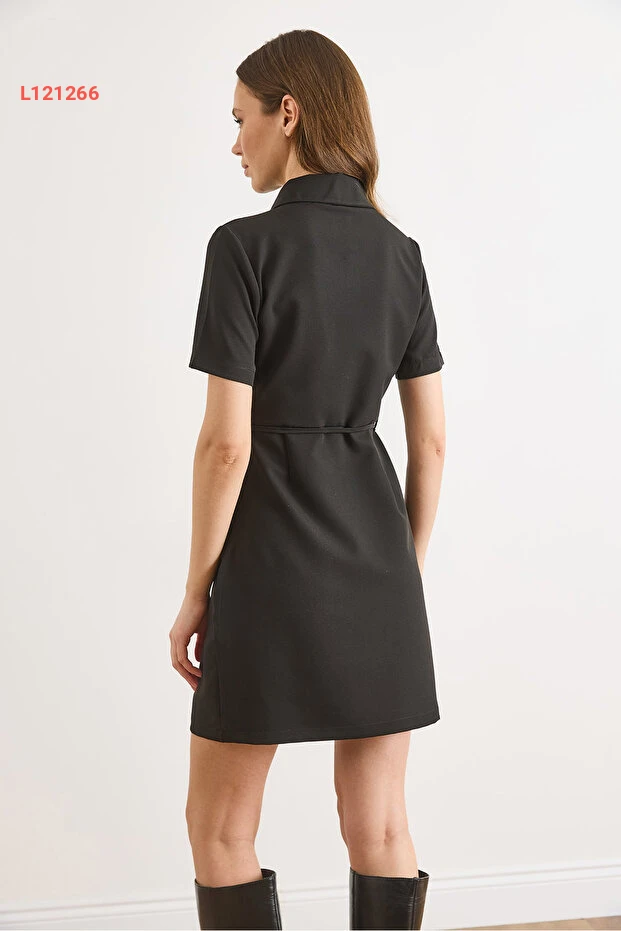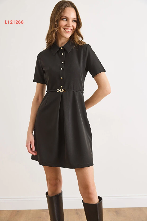 استمتعي بالأناقة العصرية مع فستان أولالووك الأسود المذهل، حيث يتميز بتصميمه الأنيق بخصر مزود بحزام ودائرة نصفية مثالية. هذا الفستان القصير يوفر لكِ راحة تامة وأناقة لا تضاهى، مما يجعله الخيار المثالي لأي مناسبة. ارتدي هذا الفستان وكوني محط الأنظار بإطلالة فريدة وجذابة!