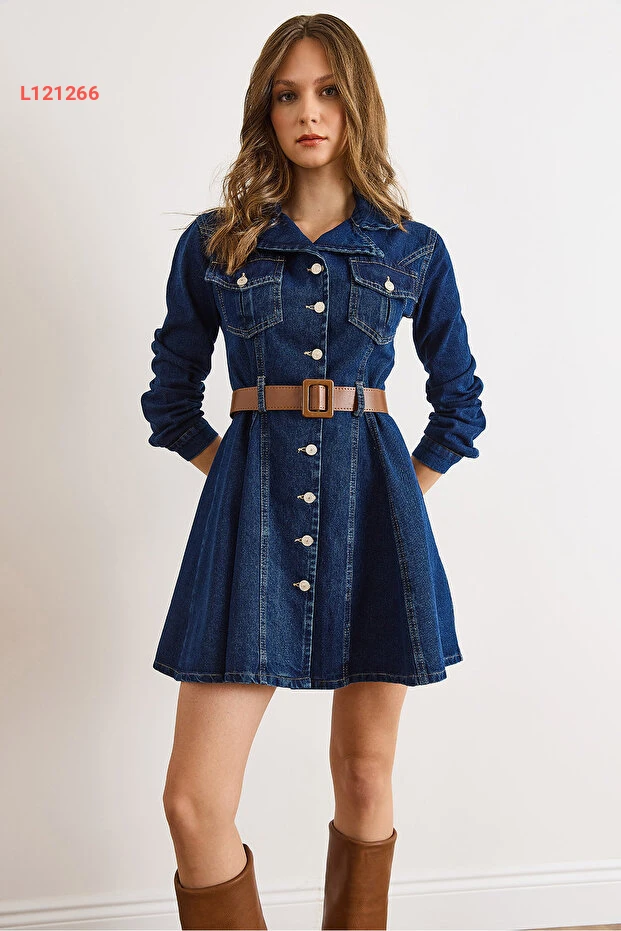 استمتعي بأناقتك مع فستان Olalook كموضة عصرية! يتميز بلون أزرق داكن جذاب، وتصميم عصري مع حزام يحدد الخصر وكسرات مميزة تضفي لمسة عصرية، إضافة إلى جيوب عملية تضمن لك الراحة. ارتدي هذا الفستان المثالي للمناسبات النهارية أو المسائية، وكوني دائمًا في مقدمة صيحات الموضة!