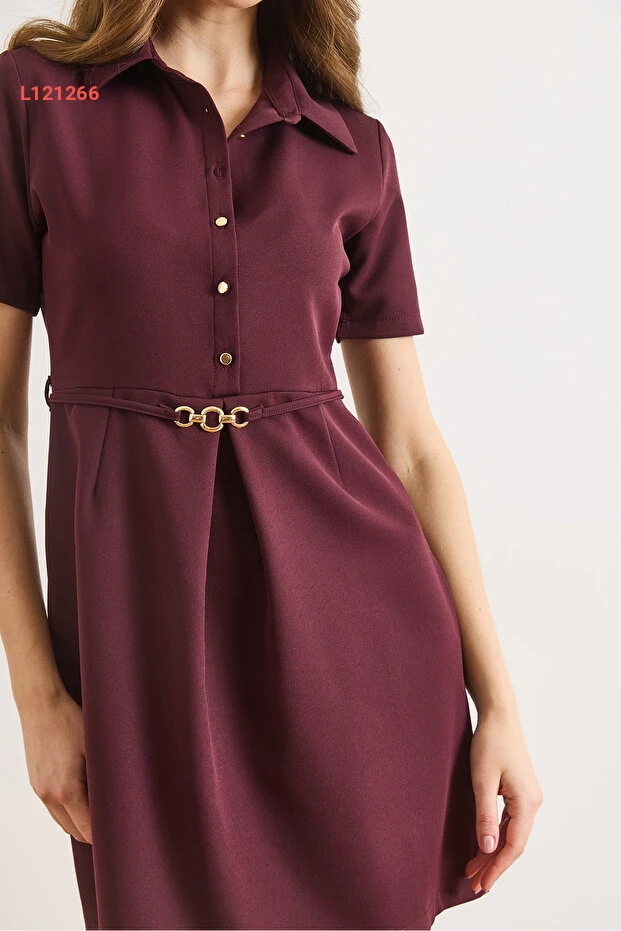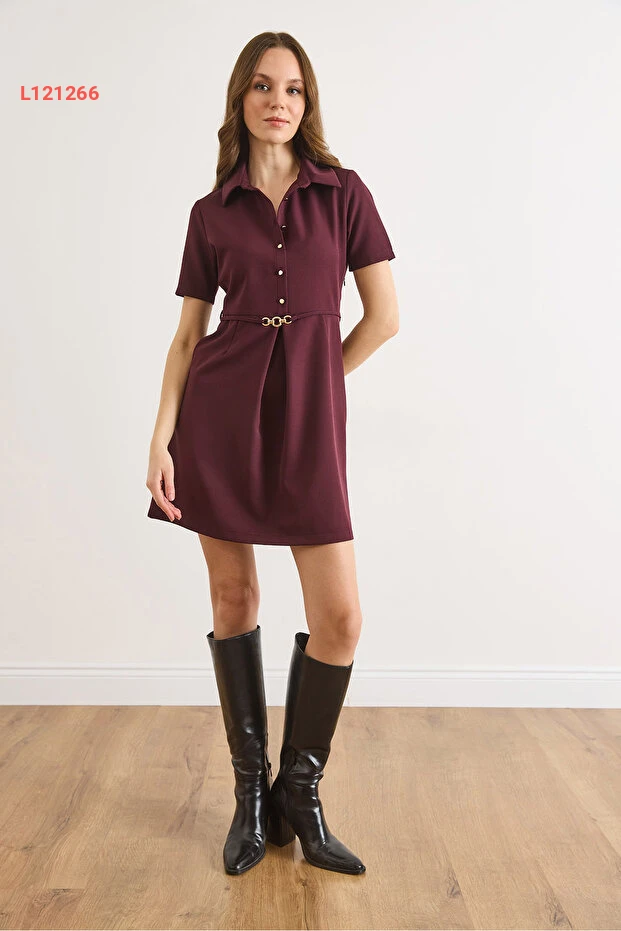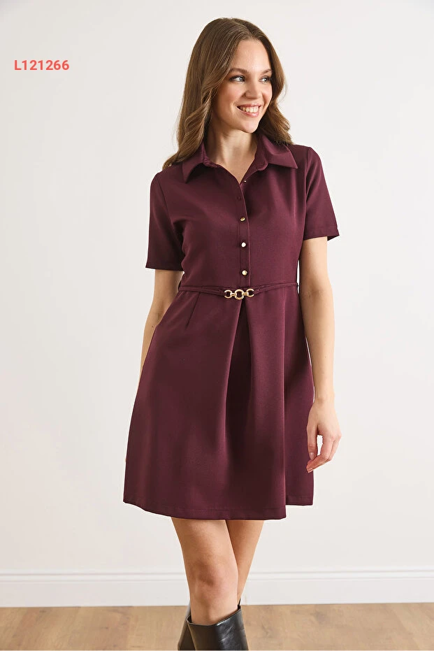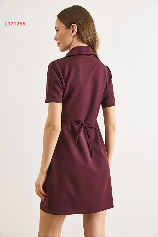 فستان ميني كلوش مزدوج الأزرار مع حزام باللون الميردوم من أولالووك