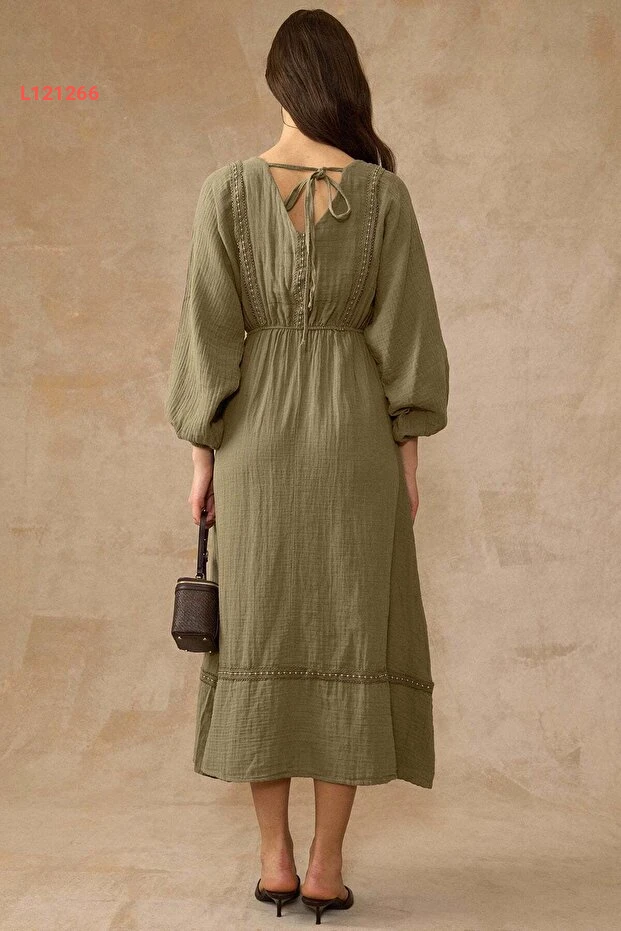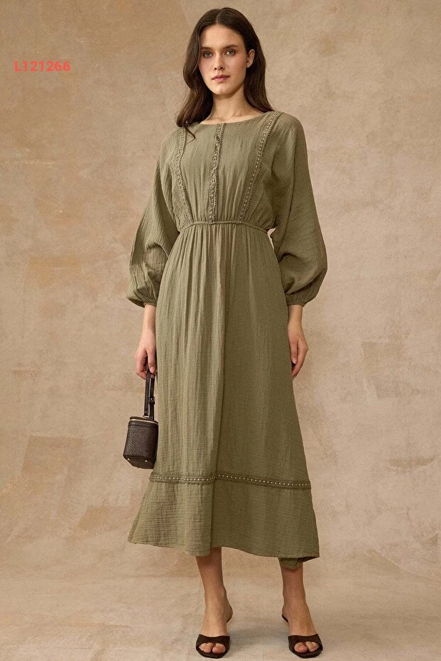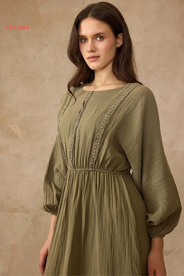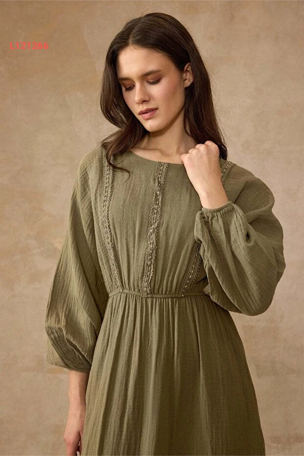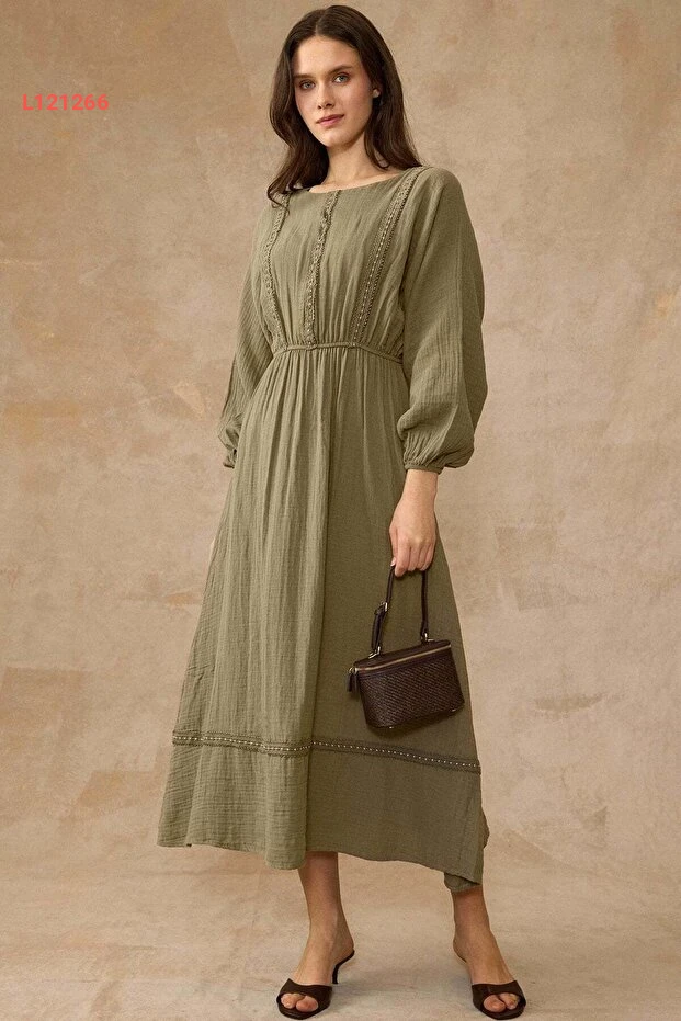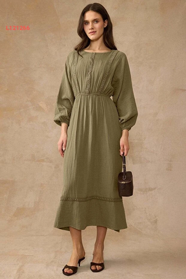 استمتع بأناقتك العصرية مع فستان Olcay بشريط تفصيلي وبطن مرن، حيث يجمع بين الراحة والأناقة في تصميم واحد. مصنوع من قماش الموسلين الناعم، يوفر لك هذا الفستان خفة الحركة والتهوية المثالية، مما يجعله الخيار المثالي لأي مناسبة. استمتعي بإطلالة أنثوية وجذابة مع اللون الحاكي الذي يضفي لمسة من الأناقة على كل مظاهر إطلالتك.