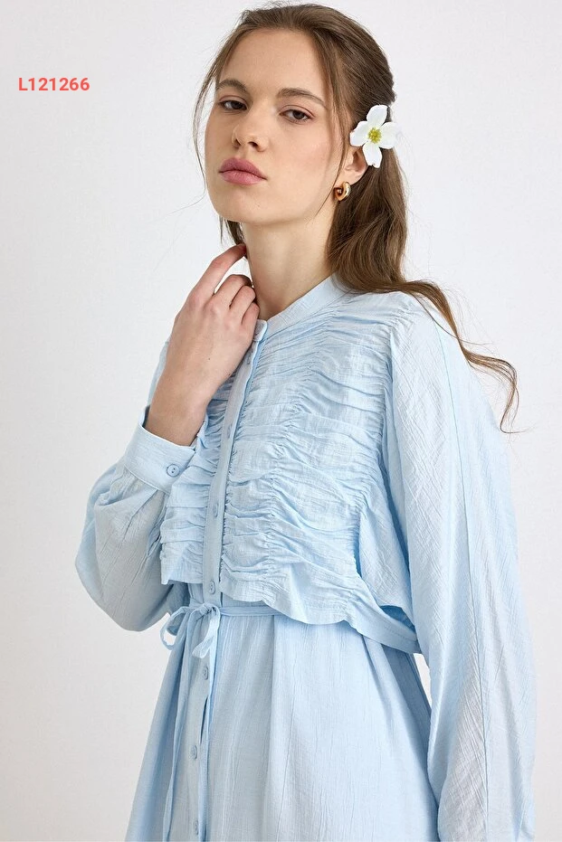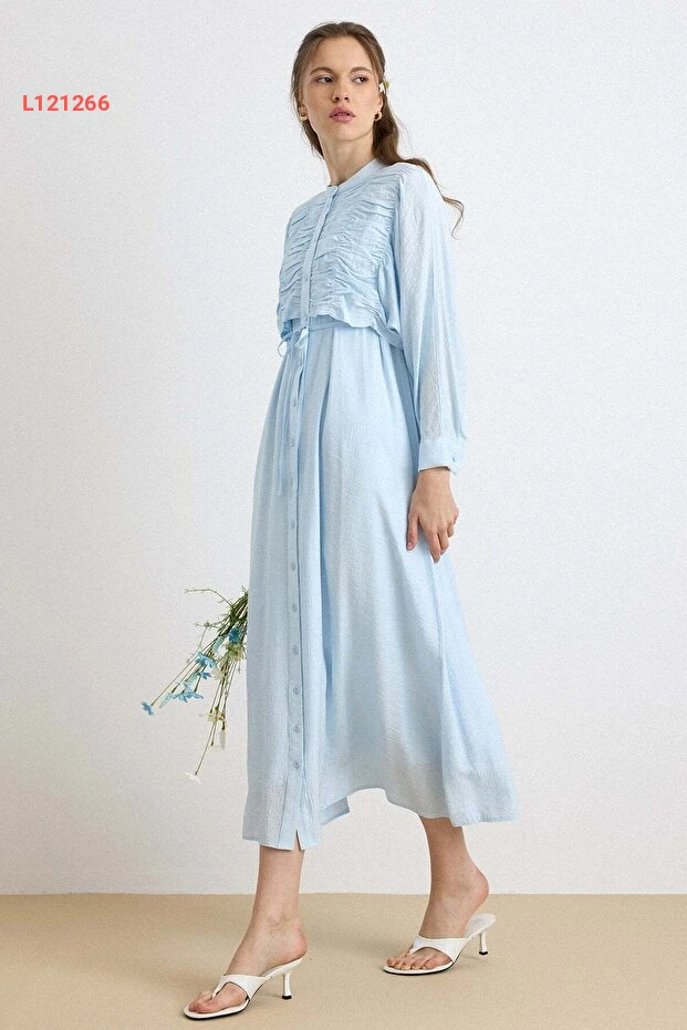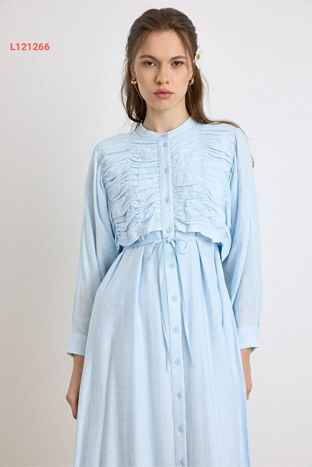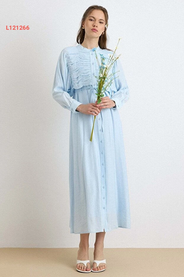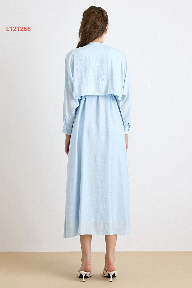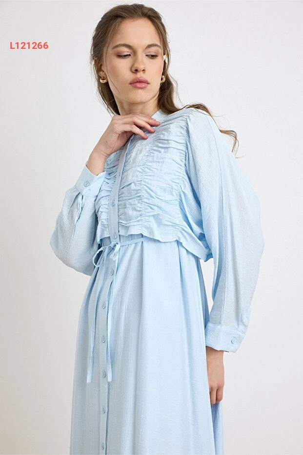 فستان أزرق فاتح بتفاصيل التفاصيل والكاب 9433-E