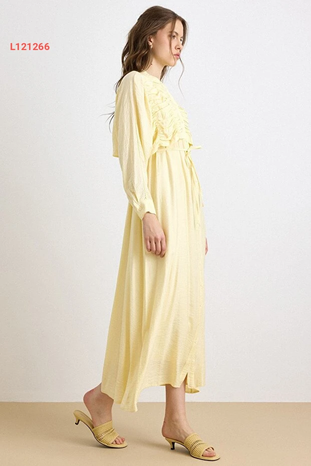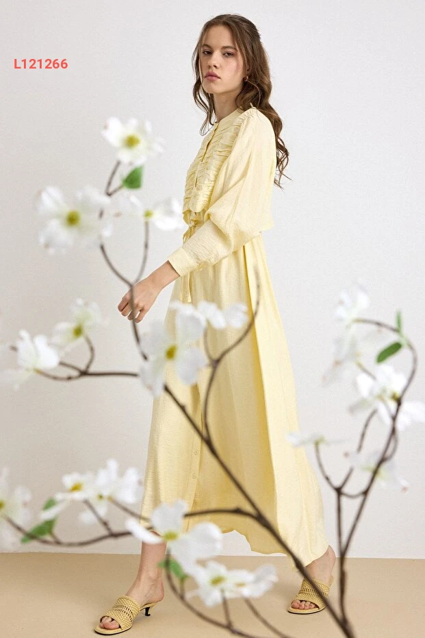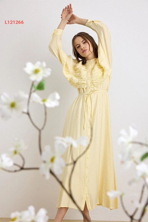اكتشفي أناقة لا مثيل لها مع فستان أولكاي بتفاصيل بوزغو والبرلين، الذي يجمع بين الأنوثة والعصرية بلون أصفر مشرق. تصميمه الفريد يمنحكِ مظهراً مميزاً وجذاباً، بينما تضيف تفاصيل البرلين لمسة من الإثارة والراحة في كل مناسبة. ارتدي هذا الفستان وتألقي بإطلالة ساحرة تبهر الجميع!