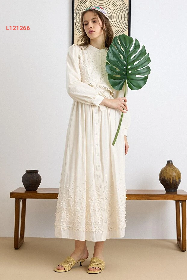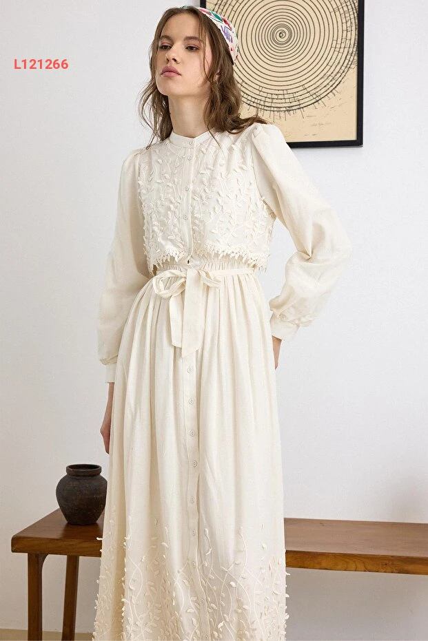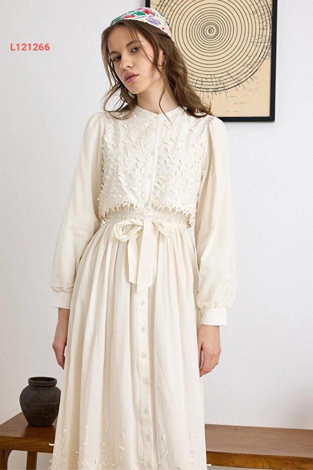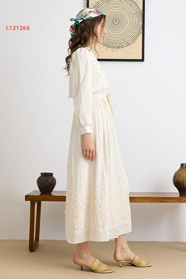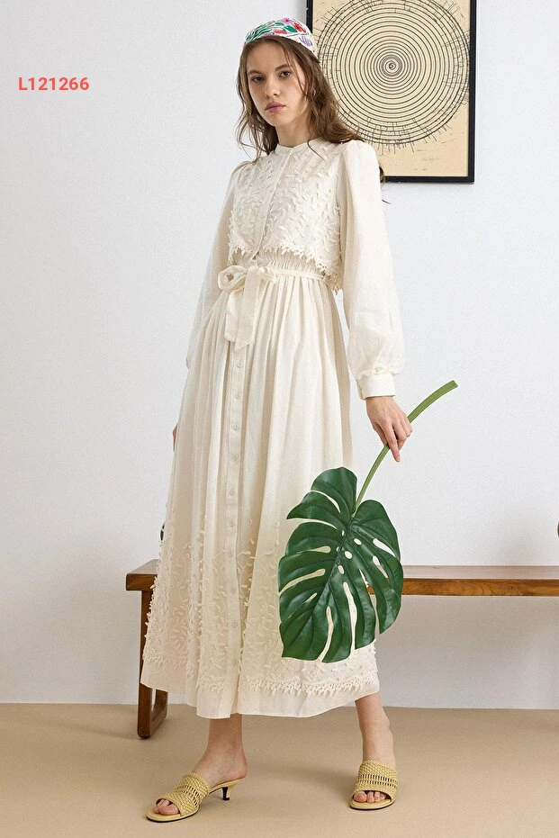 استمتعي بإطلالة أنيقة وجذابة مع فستان Olcay المميز، الذي يتميز بتصميمه الثلاثي الأبعاد والتفاصيل الأنيقة في الدانتيل. بلون الكريمي الفاتح، يجمع هذا الفستان بين الفخامة والراحة، مما يجعله الخيار المثالي لمناسباتك الخاصة. ارتدي هذا الفستان واستمتعي بإطلالة ساحرة تضفي لمسة من الجمال على كل لحظة.