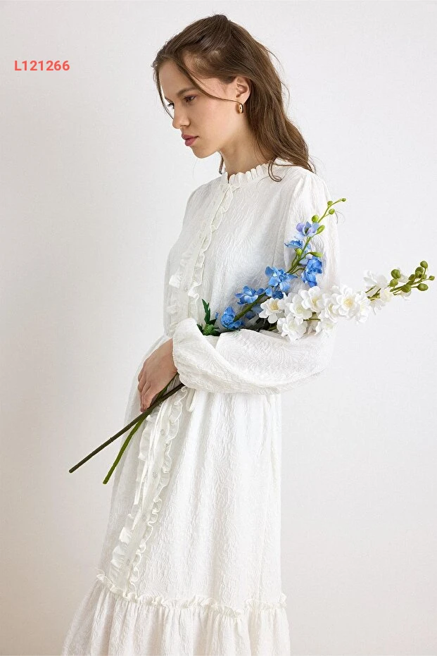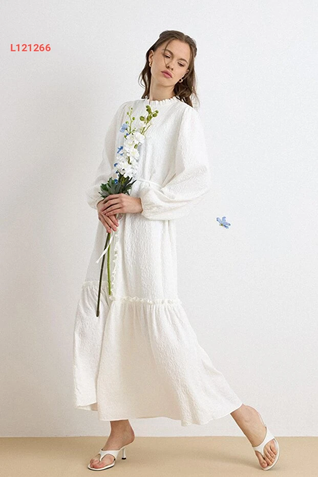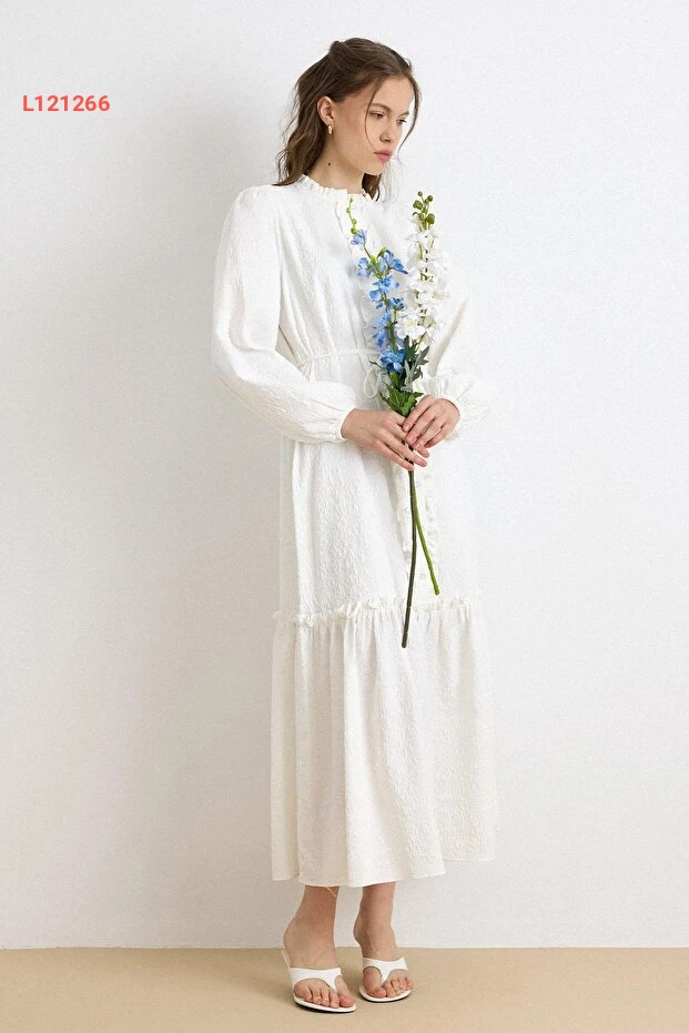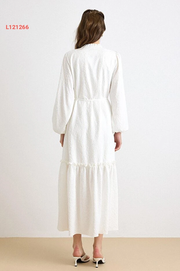 فستان جاكار أبيض مزين بالتفاصيل الفاخرة - رقم 9431-E