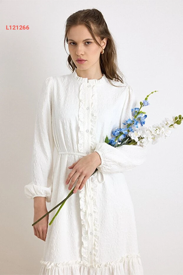 اكتشفي أناقة فريدة مع فستان Olcay Fırfır Detaylı Jakar باللون الأبيض! يتميز بتفاصيل الفرفر الرائعة ونسيجه الجكار الفاخر، مما يضمن لك مظهرًا جذابًا ومريحًا في كل مناسبة. ارتدي هذا الفستان لتسليط الضوء على أنوثتك وجاذبيتك بأسلوب عصري وبسيط.