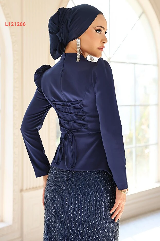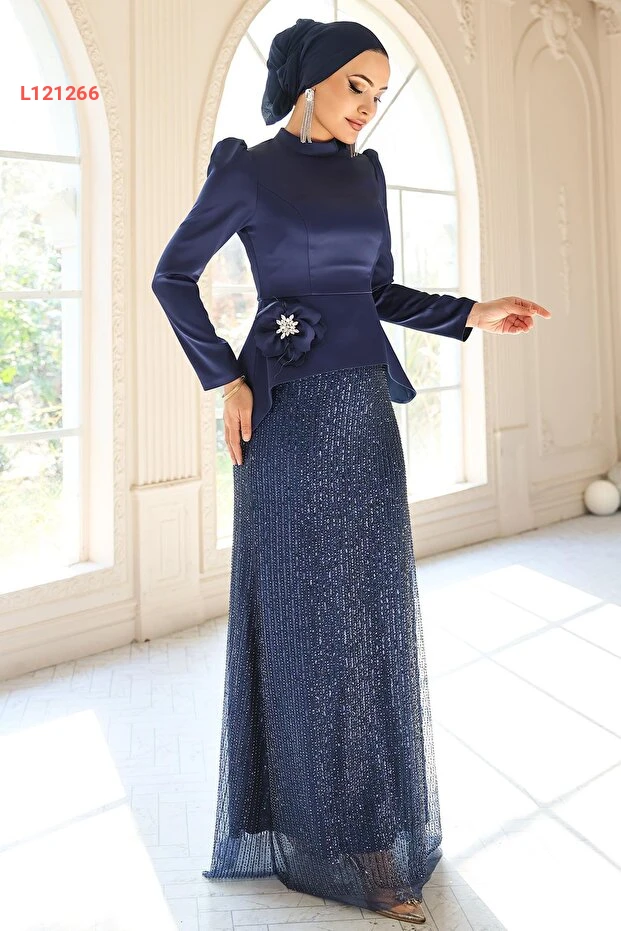 تألقي بأناقة لا مثيل لها مع مجموعة Olcay Çiçek، والتي تضم فستان ساتان كلاسيكي مع تفاصيل باهتة ووردية جميلة. يتميز التصميم برباط خلفي لضمان ملاءمة مثالية، مما يجعله الخيار المثالي للمناسبات الخاصة. أضيفي لمسة من الفخامة والتميز لإطلالتكِ مع هذا الزي الأنيق بلون النيلي العميق.