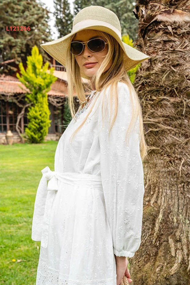 استمتعي بأناقة لا مثيل لها مع فستان Olcay المصنوع من القطن الفاخر، حيث يتميز بتصميمه البسيط والعملي مع حزام عند الخصر لإبراز جمال قوامك. الفستان طويل ويجمع بين الأناقة والراحة، مما يجعله الخيار المثالي للمناسبات المختلفة، بالإضافة إلى تفاصيل الدانتيل التي تضيف لمسة من الأنوثة والرقي.