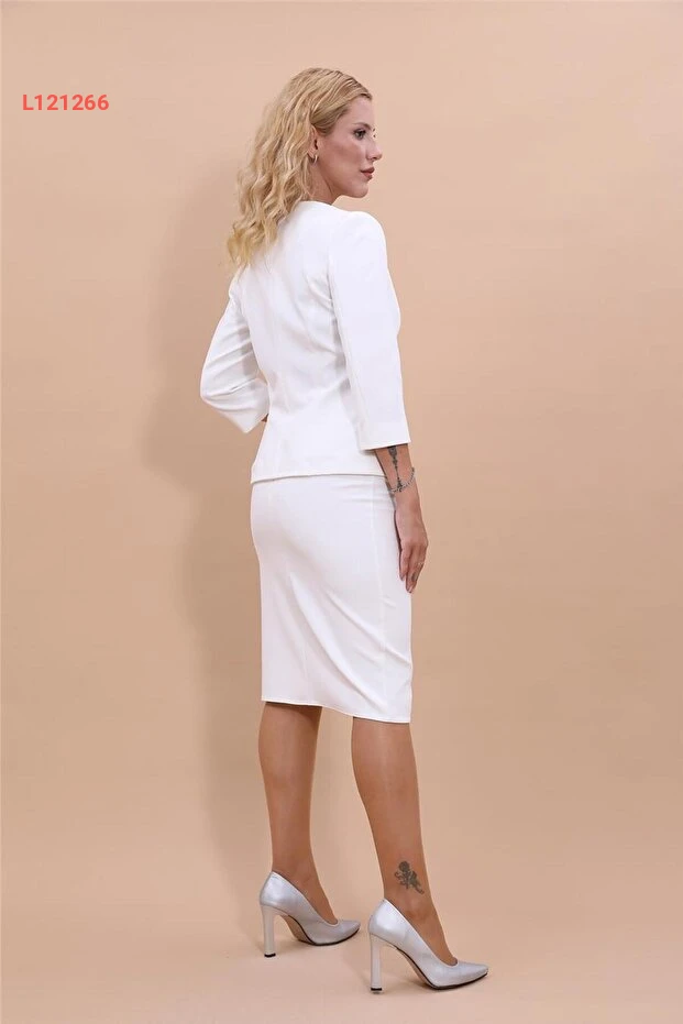أضف لمسة أنيقة إلى خزانة ملابسك مع طقم ÖNDER ÖZSOY المكون من جاكيت بياقة بيضاوية والتنورة المستقيمة باللون البيج الفاتح. يتميز التصميم بحرفية عالية وقصة متقنة تبرز أناقتك في كل مناسبة، بينما يوفر الراحة والمرونة في الحركة. يرتقي هذا الطقم بمظهرك إلى مستوى جديد من العصرية والأناقة.