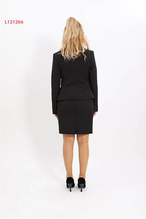 تألق بأناقتك مع طقم ÖNDER ÖZSOY المكون من جاكيت بيبلوم وتنانير قصيرة بلون أسود أنيق. هذا التصميم الرائع يعزز أنوثتك مع تفاصيل دقيقة تناسب جميع المناسبات، مما يجعلك محط الأنظار في كل ظهور. مصنوع من خامات عالية الجودة، يوفر لك الراحة والأناقة في آن واحد.