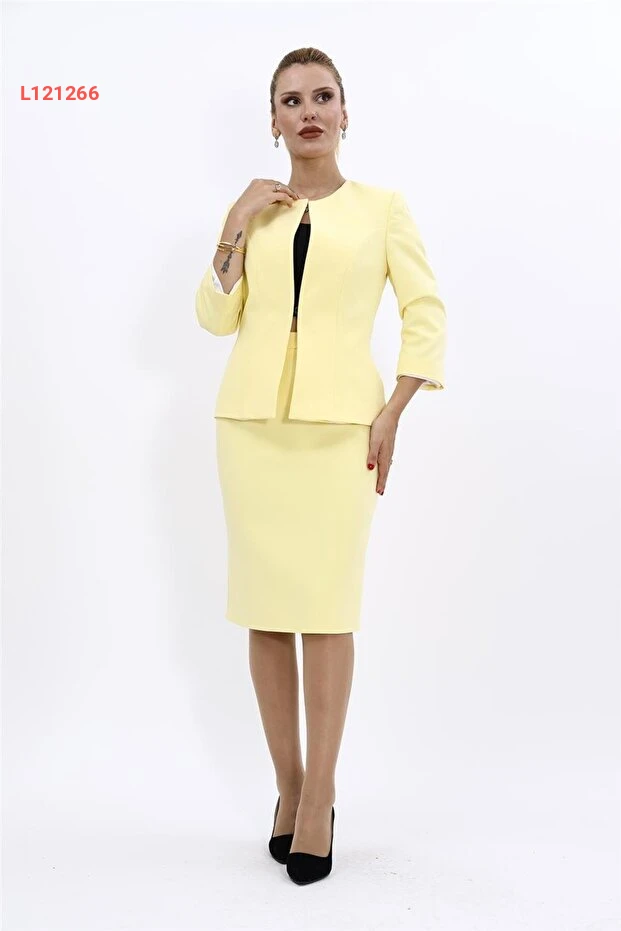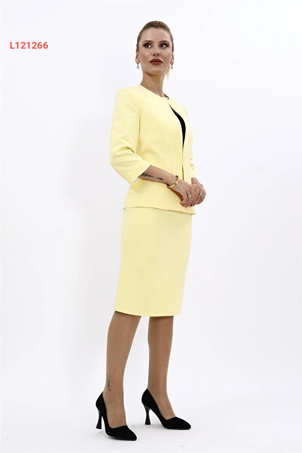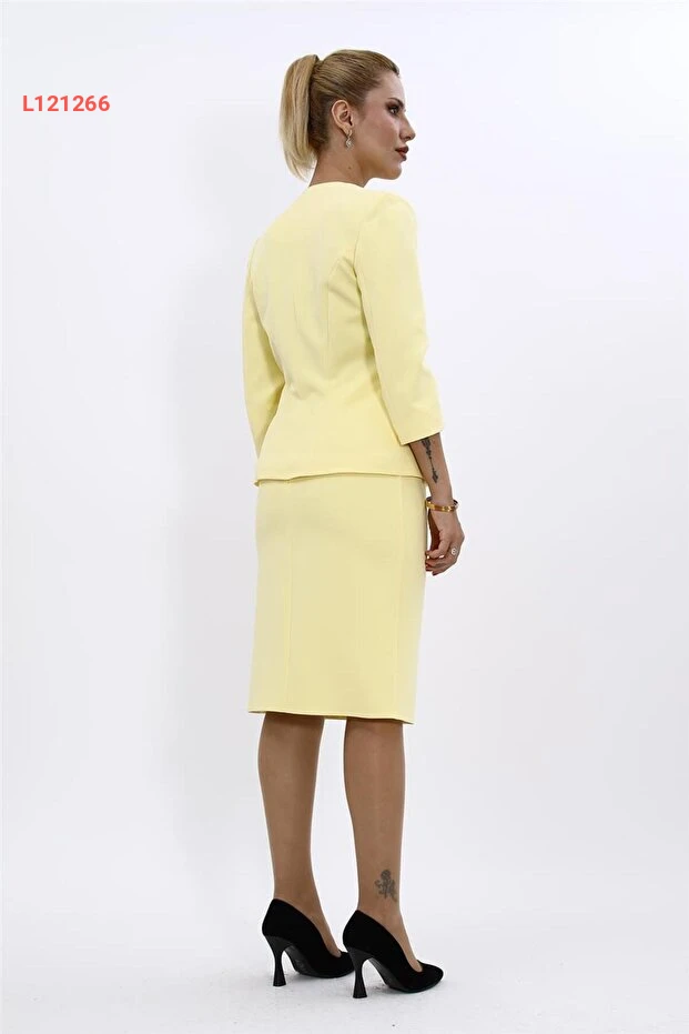 طلاء أوندر أوزسوي - مجموعة سترة على شكل بيضة وتنورة ضيقة - أصفر
