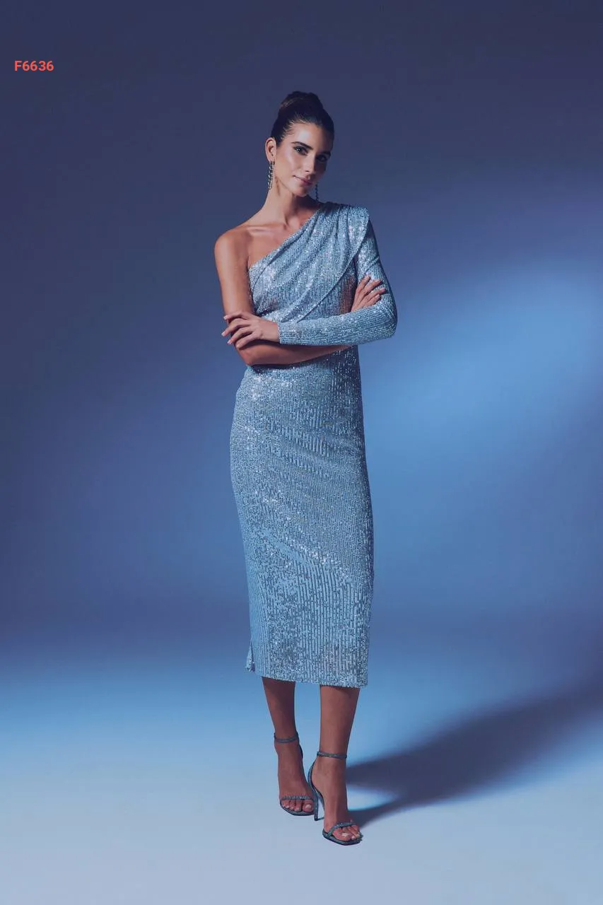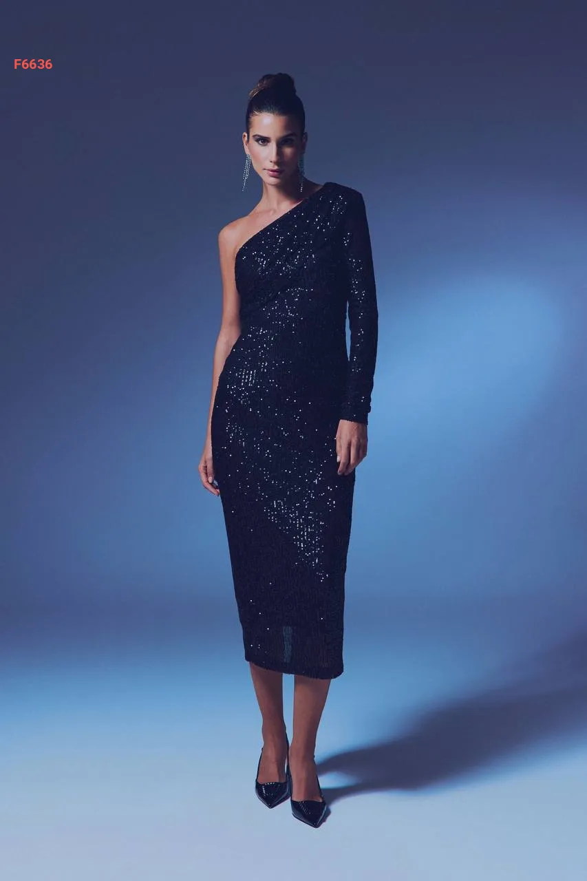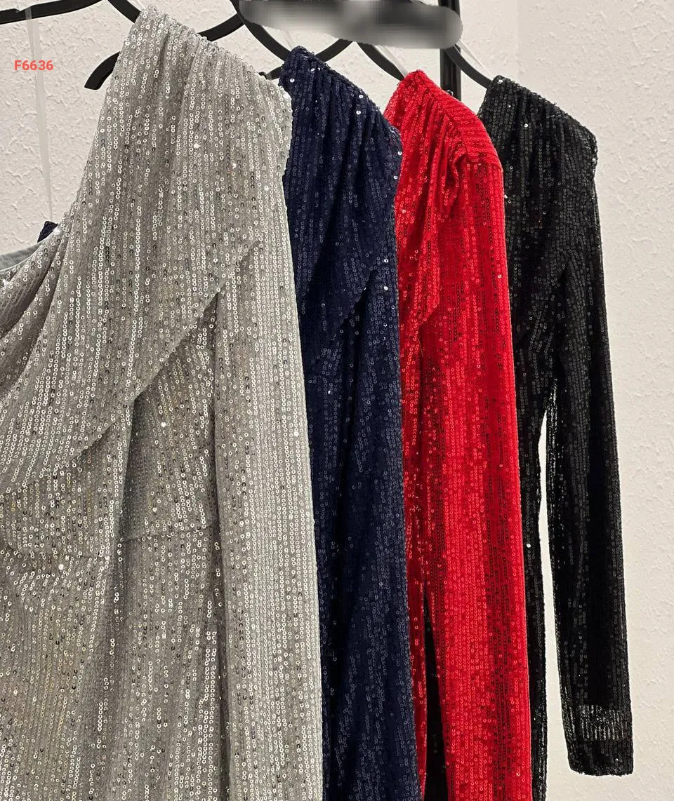 فستان باييت بكم واحد طويل