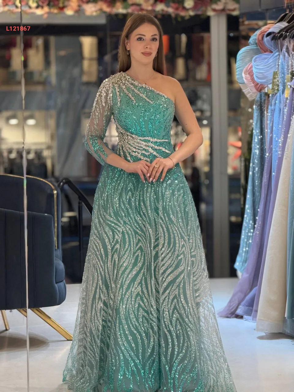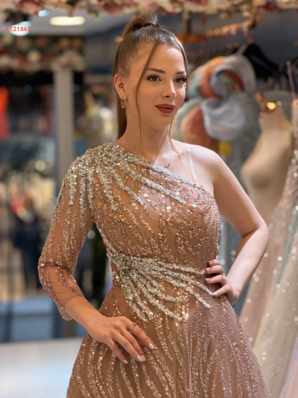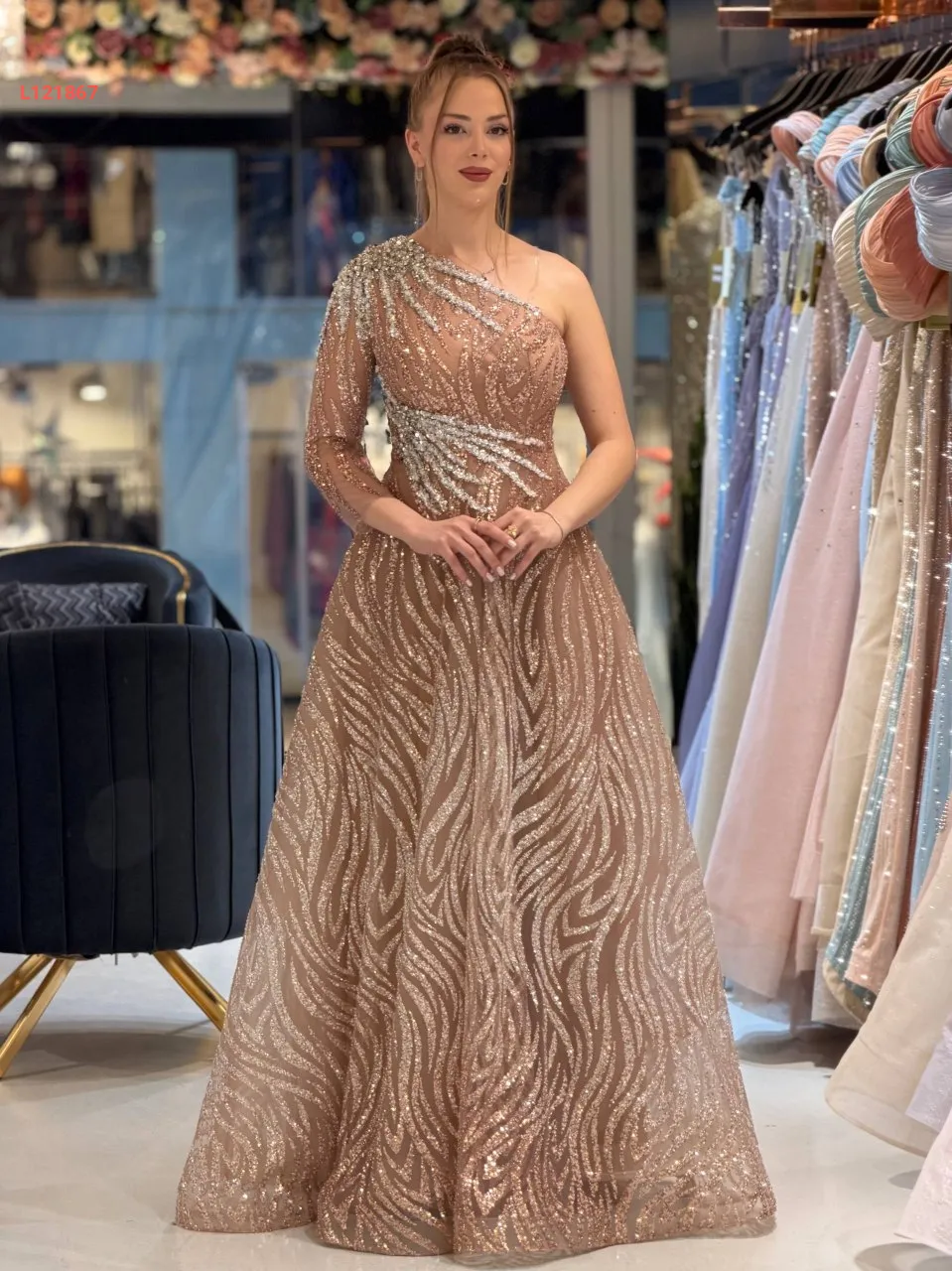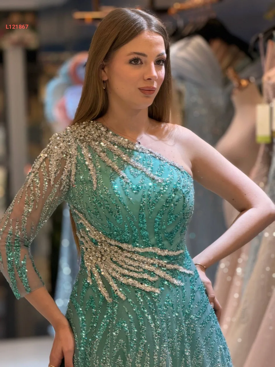 فستان سهرة، شك مكثف ، بكم واحد مع عرق شك فضي