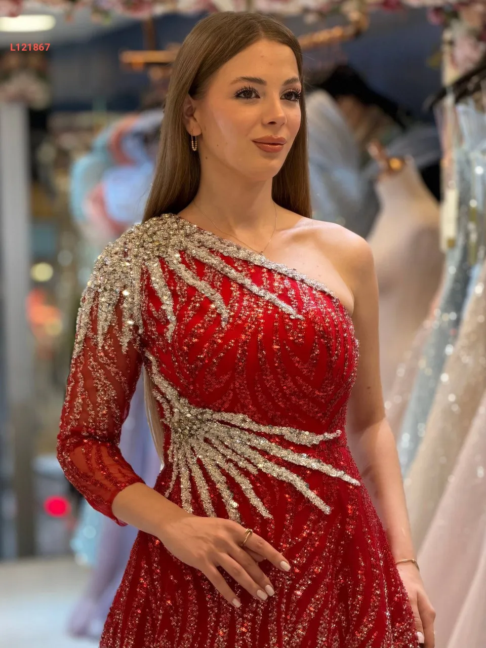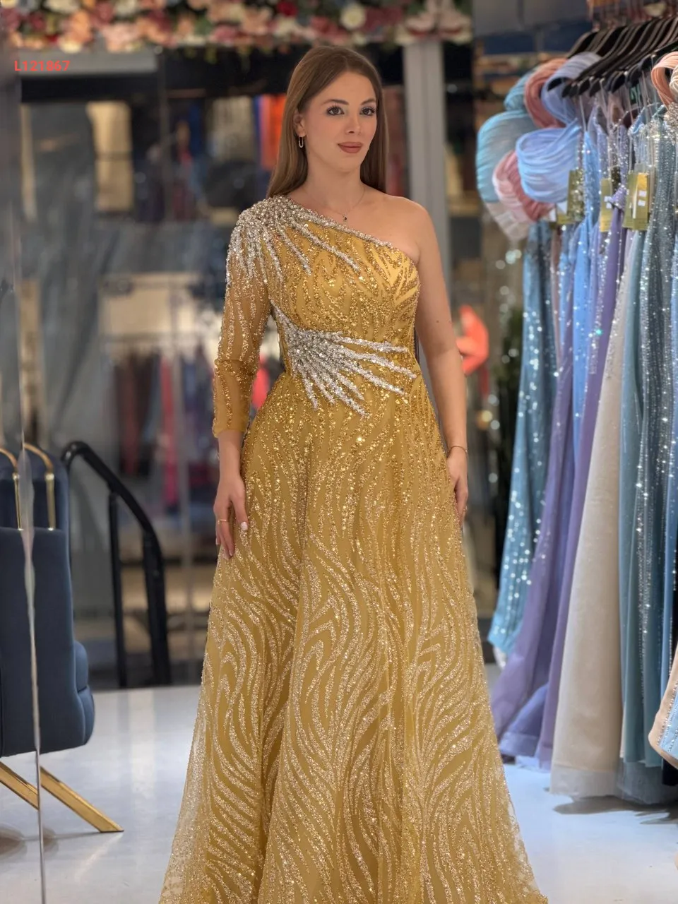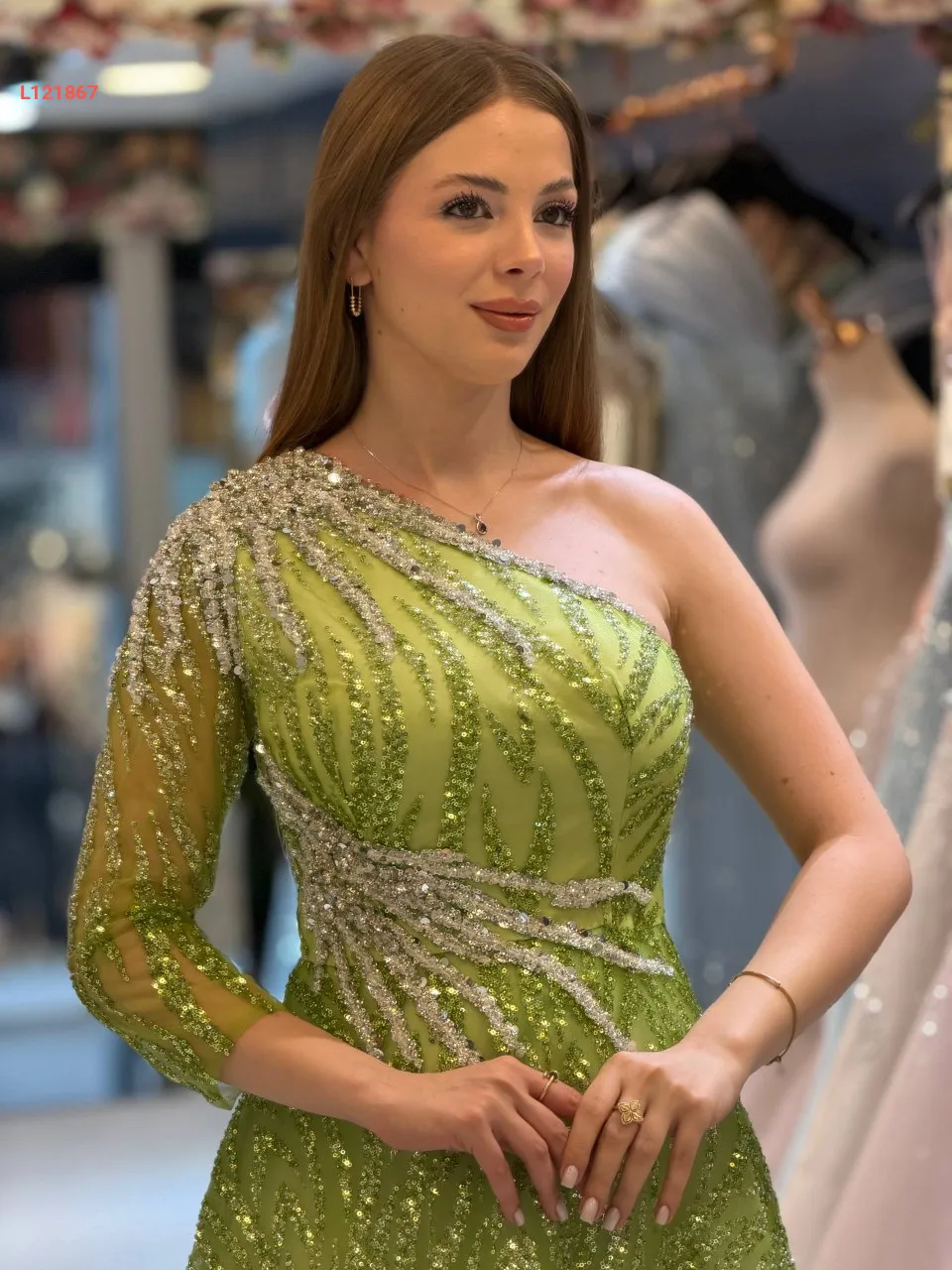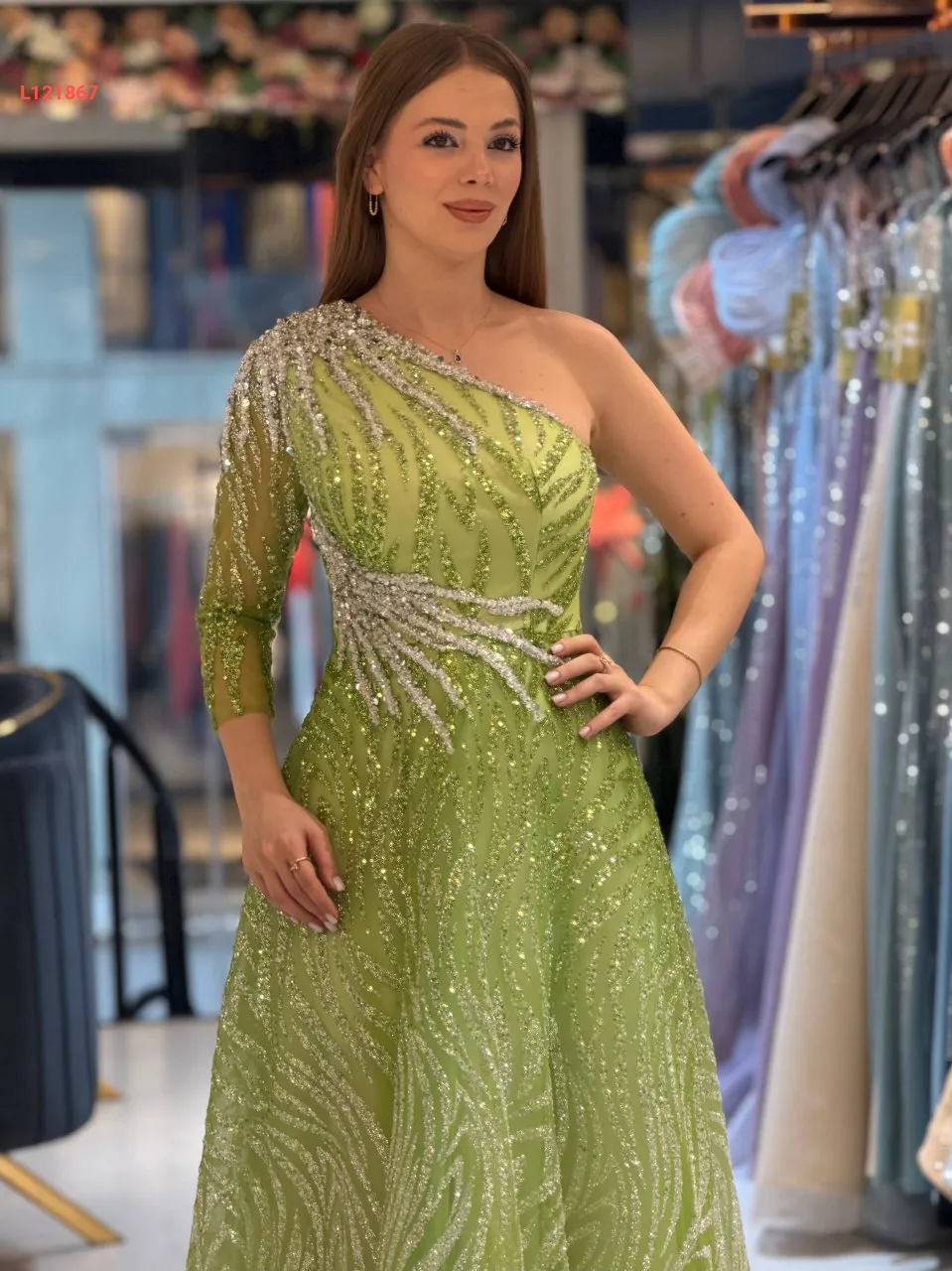 فستان سهرة، شك مكثف ، بكم واحد مع عرق شك فضي