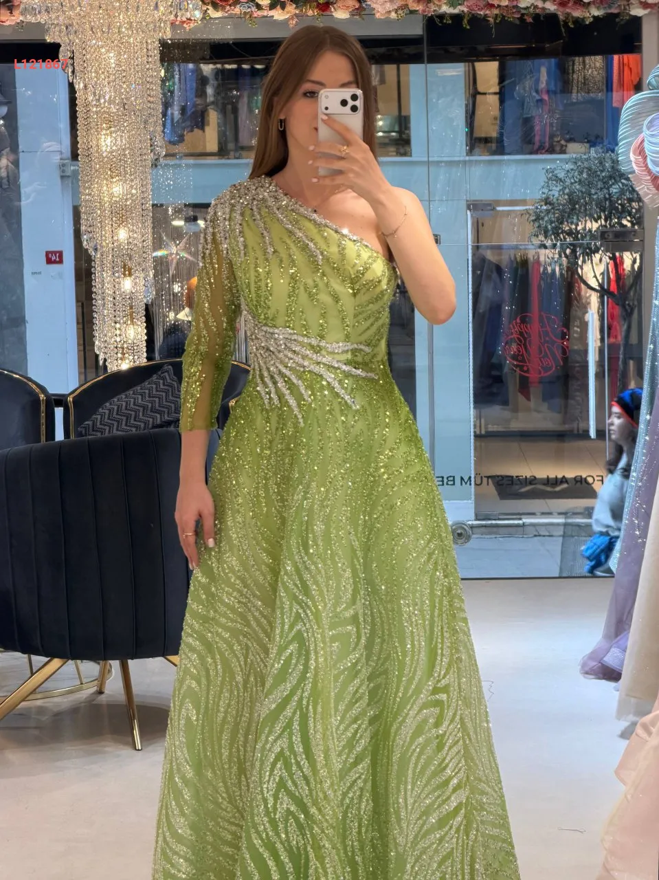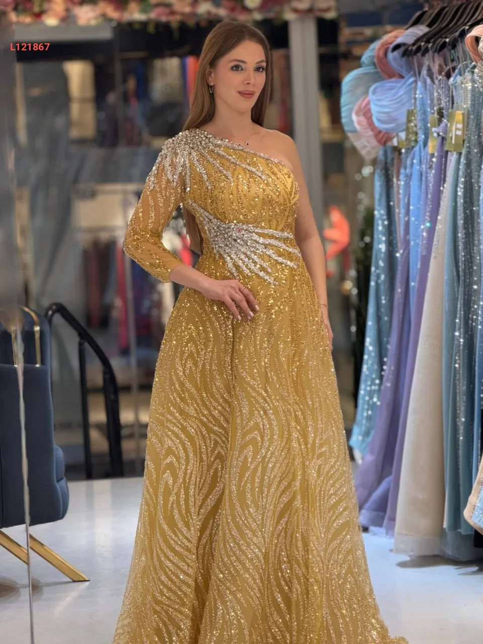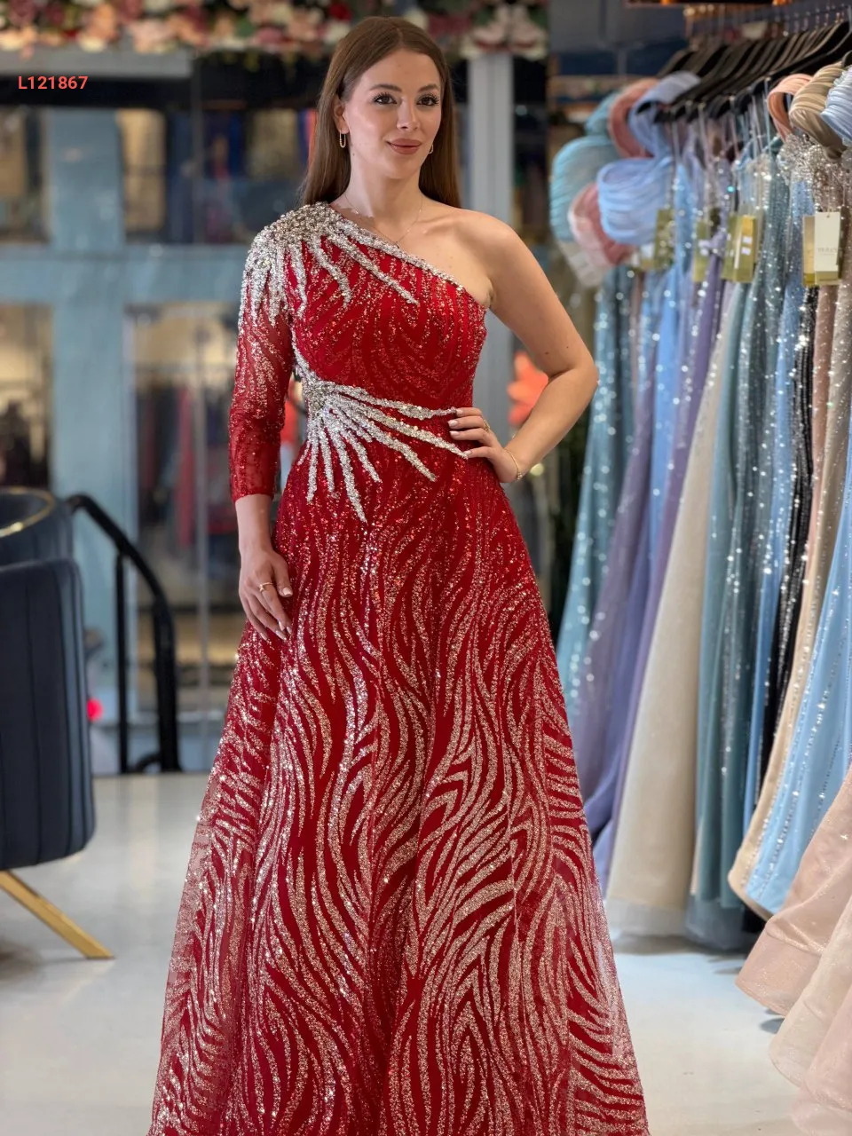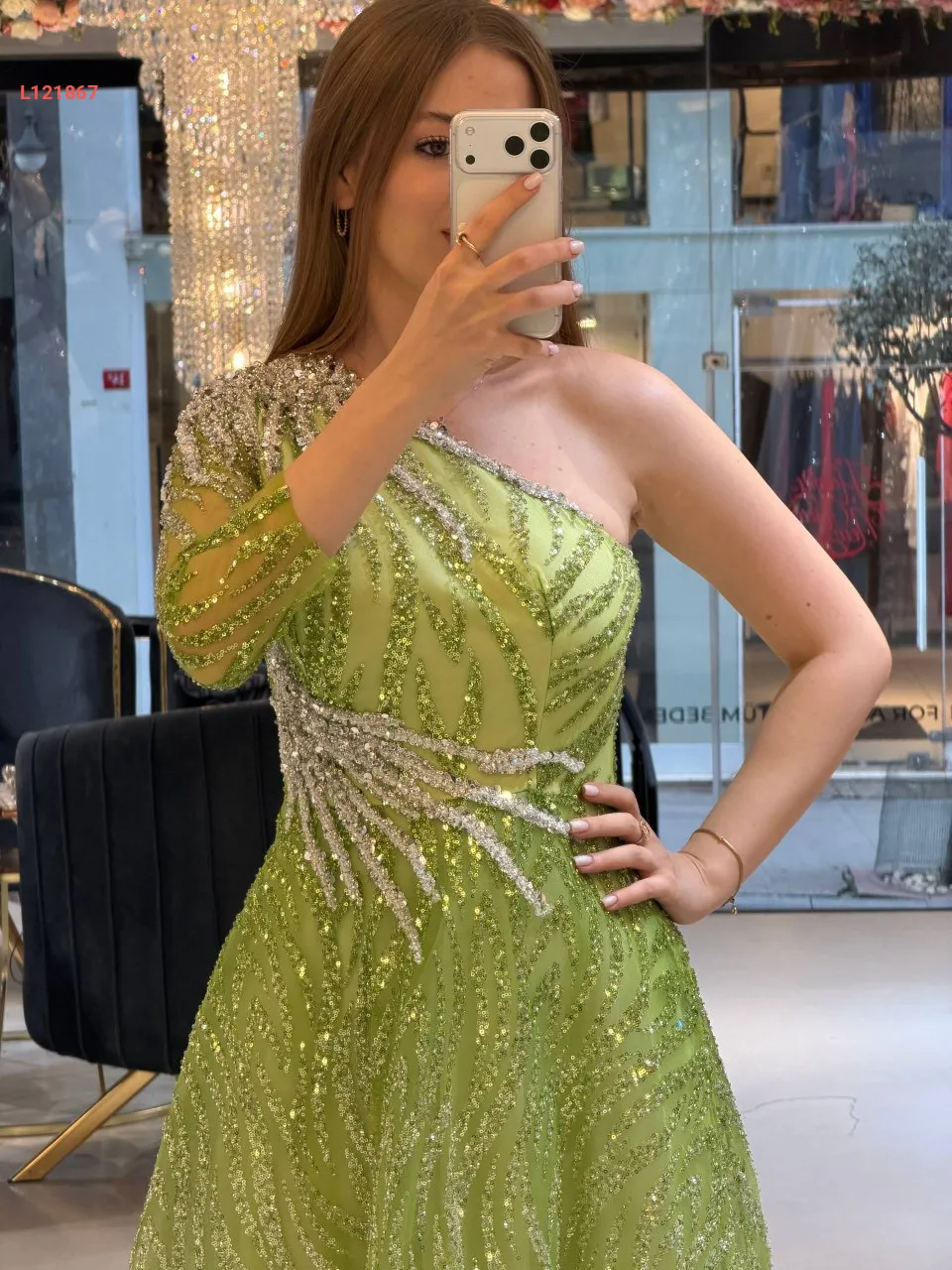 فستان سهرة، شك مكثف ، بكم واحد مع عرق شك فضي
