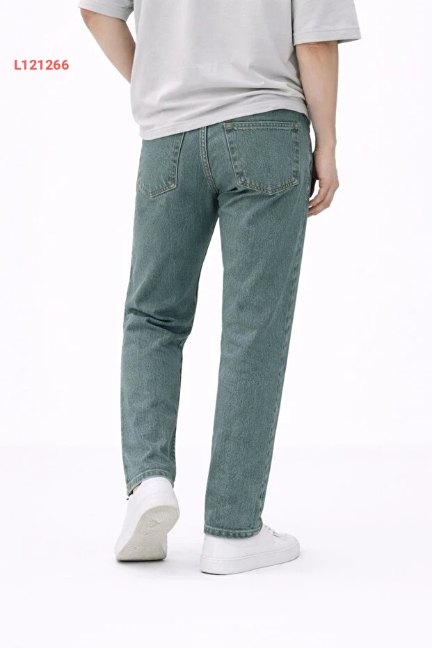 بنطلون جينز بنمط بويفرند للرجال بلون هاكي مع تأثير غسيل