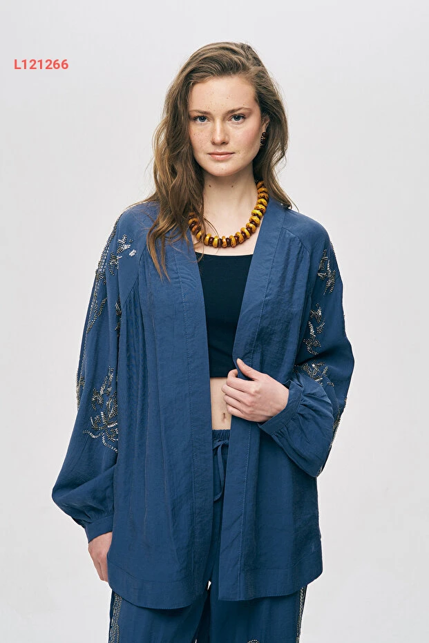 استمتعي بإطلالة أنيقة ولافتة مع كيمونو أورفيو نيغرو النسائي، حيث يتميز بتصميمه الفضفاض الذي يوفر لك الراحة المطلقة. الزخارف المميزة من الخرز على الظهر والجوانب تضفي لمسة عصرية وفريدة، مما يجعله قطعة مثالية لتنسيقاتك اليومية والسهرات. ارتدي هذا الكيمونو وأضيفي لمسة من التألق إلى كل مظهر!