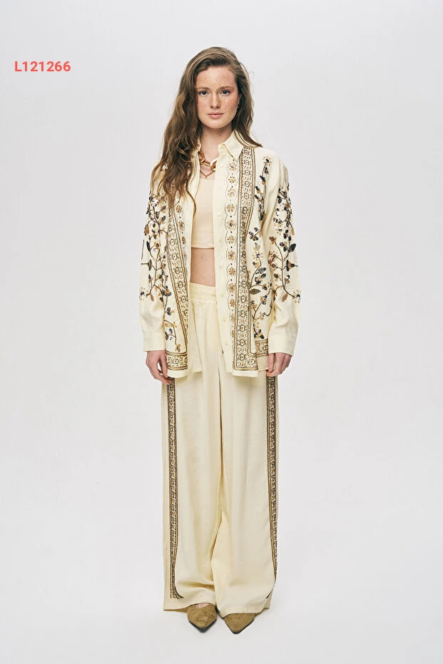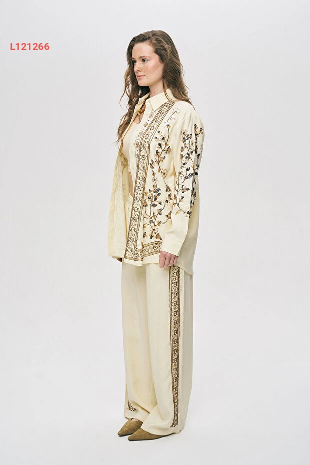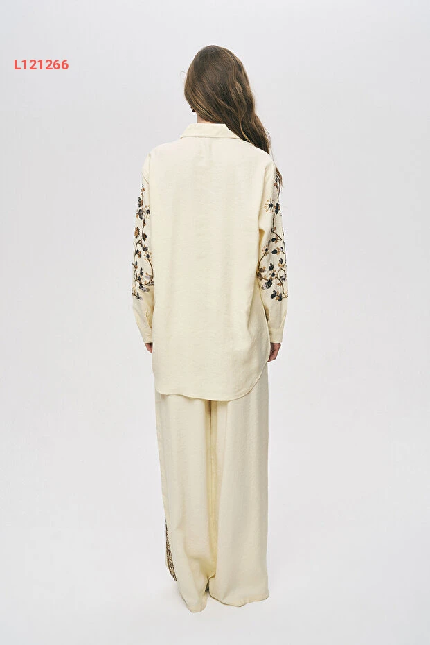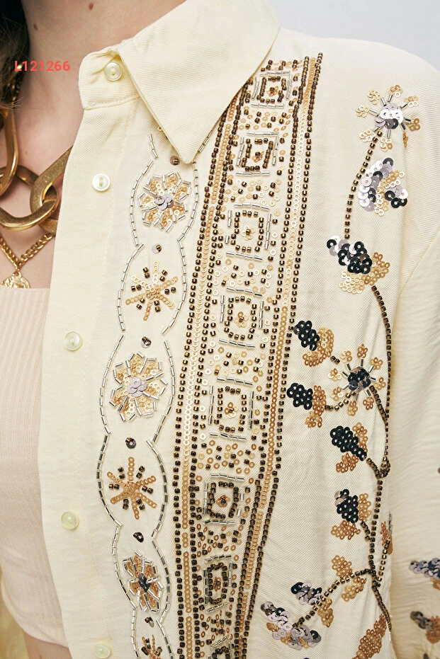 قميص أوروبي نسائي أنيق بتفاصيل مبهرة من الترتر والخرز