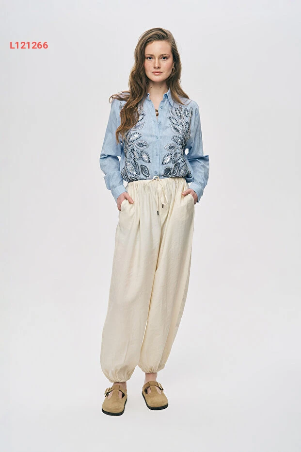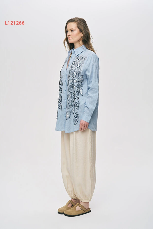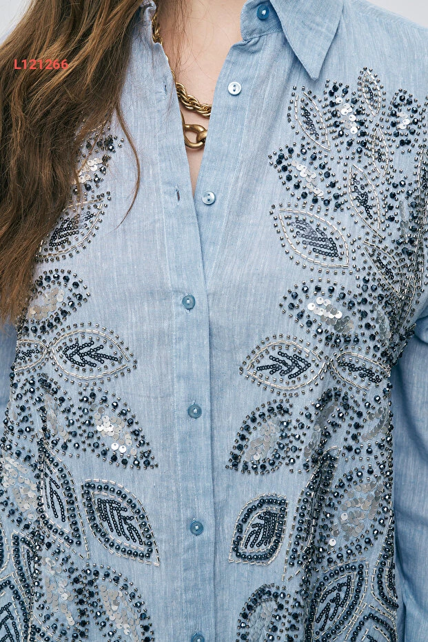 قميص نسائي oversized مزخرف بالأحجار والترتر من أورفيو نيغرو