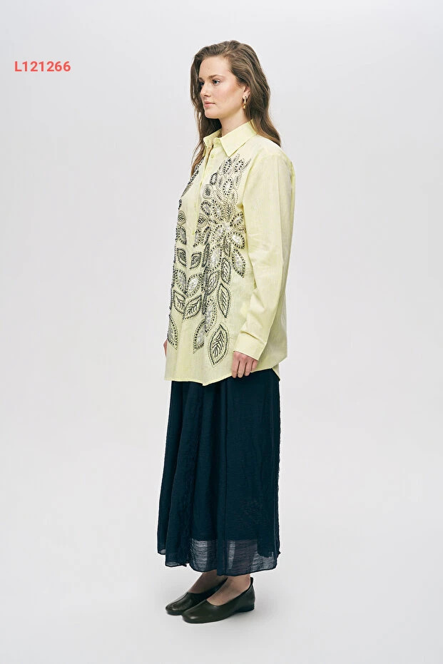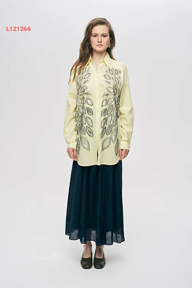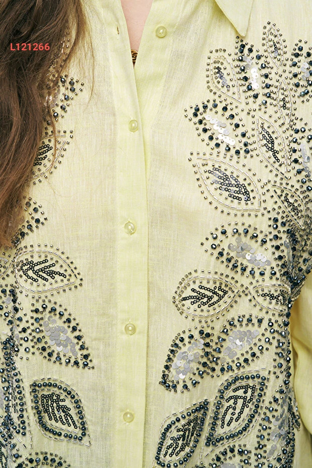 تألقي بأناقتك مع قميص "Orfeo Negro" النسائي، المصنوع بتصميم فريد يمزج بين الأناقة والراحة. يتميز بتطريزات لامعة من الجليتر والخرز، ما يضيف لمسة فنية رائعة لأسلوبك. مع قصته الفضفاضة، يمكنك تنسيقه بسهولة مع أي قطعة ملابس للحصول على إطلالة مثالية في كل الأوقات.