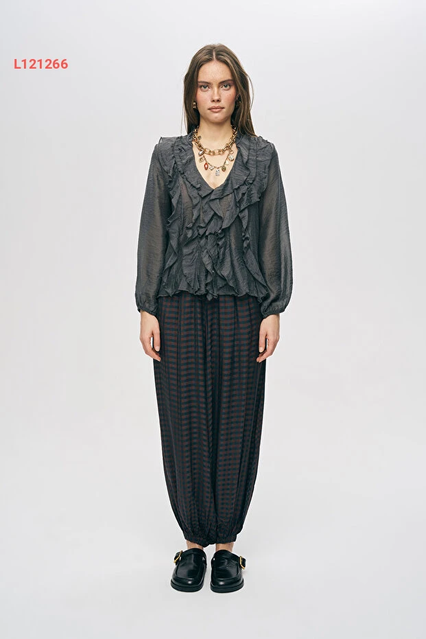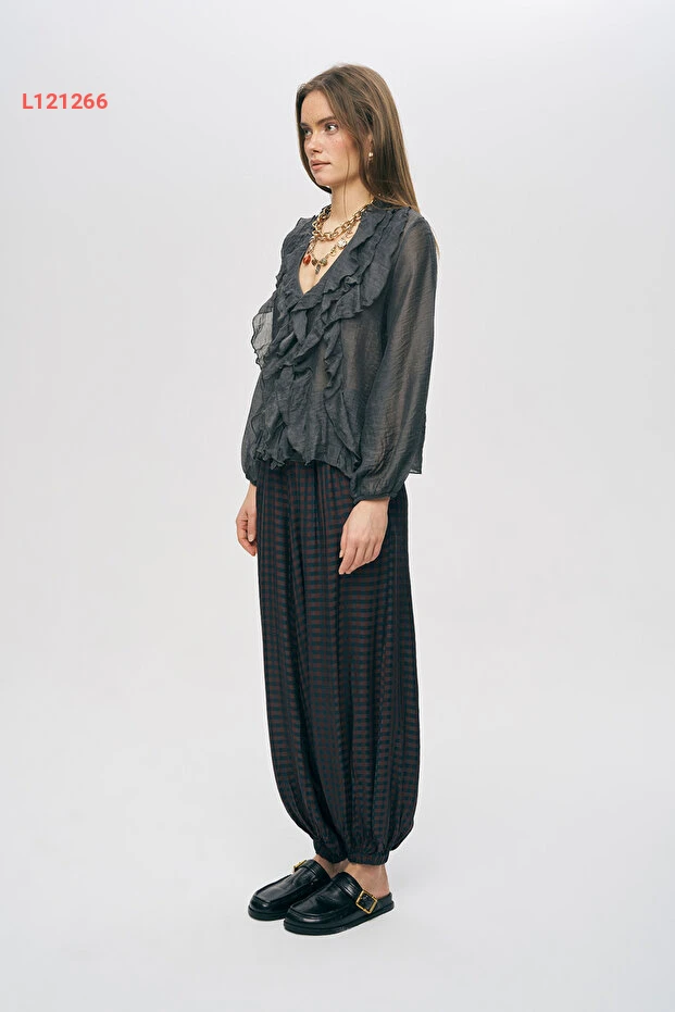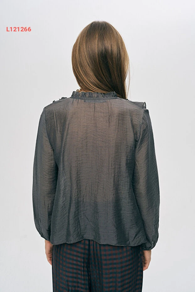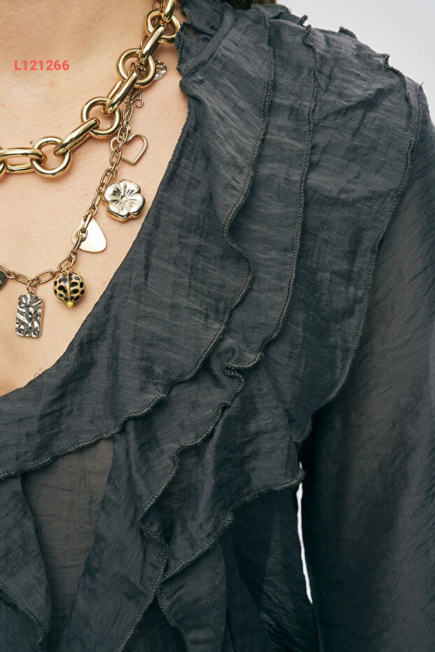 اكتشفي الأناقة والنعومة مع قميص Orfeo Negro النسائي، المصنوع من قماش حريري شفاف يتميز بتفاصيل الفولان الأنيقة. يضفي هذا القميص لمسة عصرية على إطلالتك، مثالي لتنسيقه مع جينز أو تنورة لأسلوب متميز في جميع المناسبات. انطلقي بثقة وجمال مع كل خطوة!