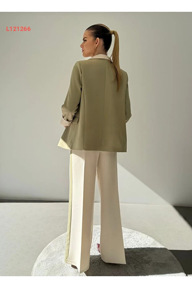طقم نسائي بليزر وبنطلون باليكير بكلاسيكية البيج والهاكي