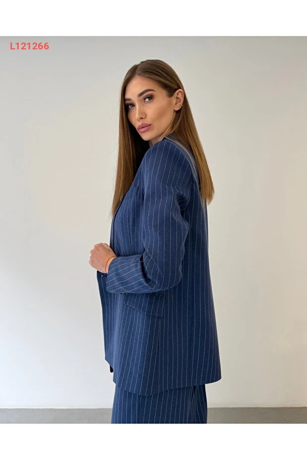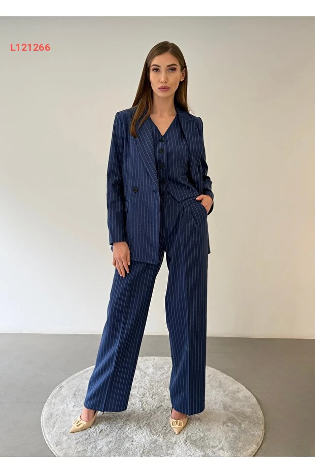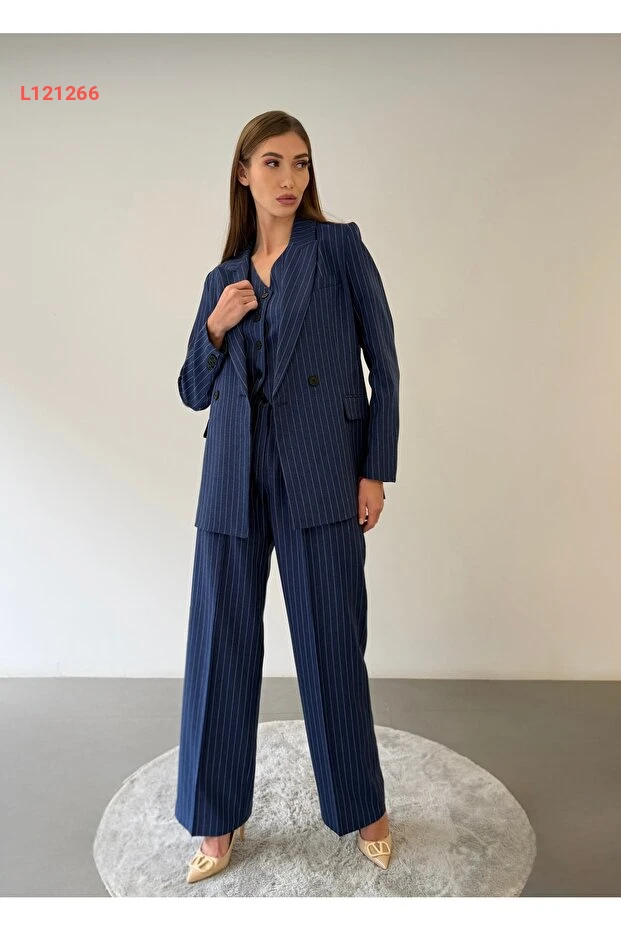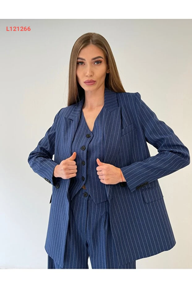 استمتعي بأناقة لا مثيل لها مع طقم Ossons Premium النسائي المكون من سترة وخوذة وسروال مخطط باللون الأزرق الداكن. تصميمه العصري يجمع بين الراحة والرقي، مما يجعله الخيار المثالي لإطلالة مكتبية متميزة. ارتديه مع أي قطعة تناسبك وتألق في كل اجتماع ومناسبة!