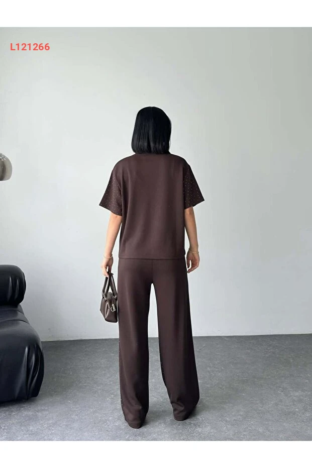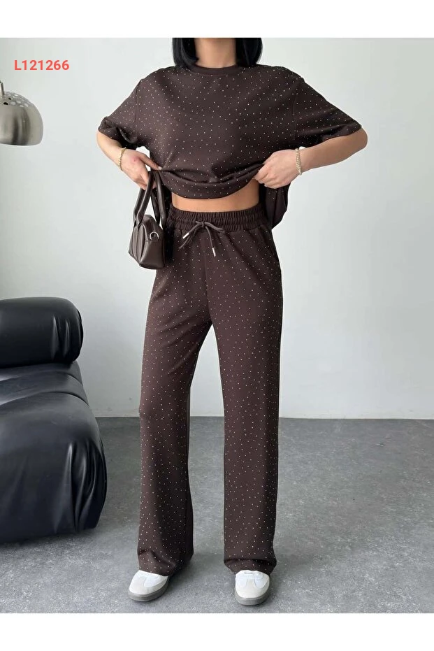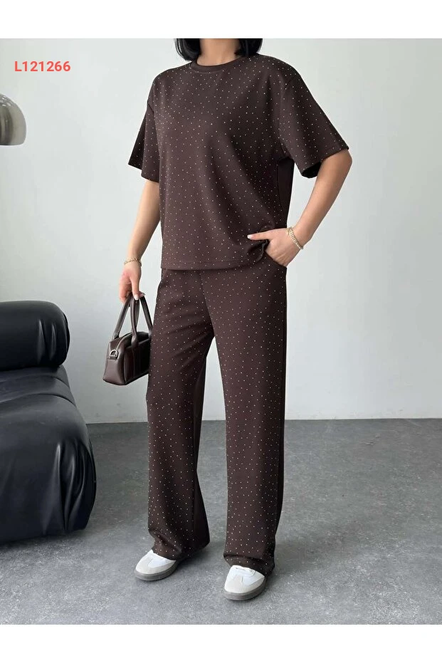 تيشيرت بتفاصيل لامعة بياقة دائرية من قماش المودال مع طقم رياضي أنيق
