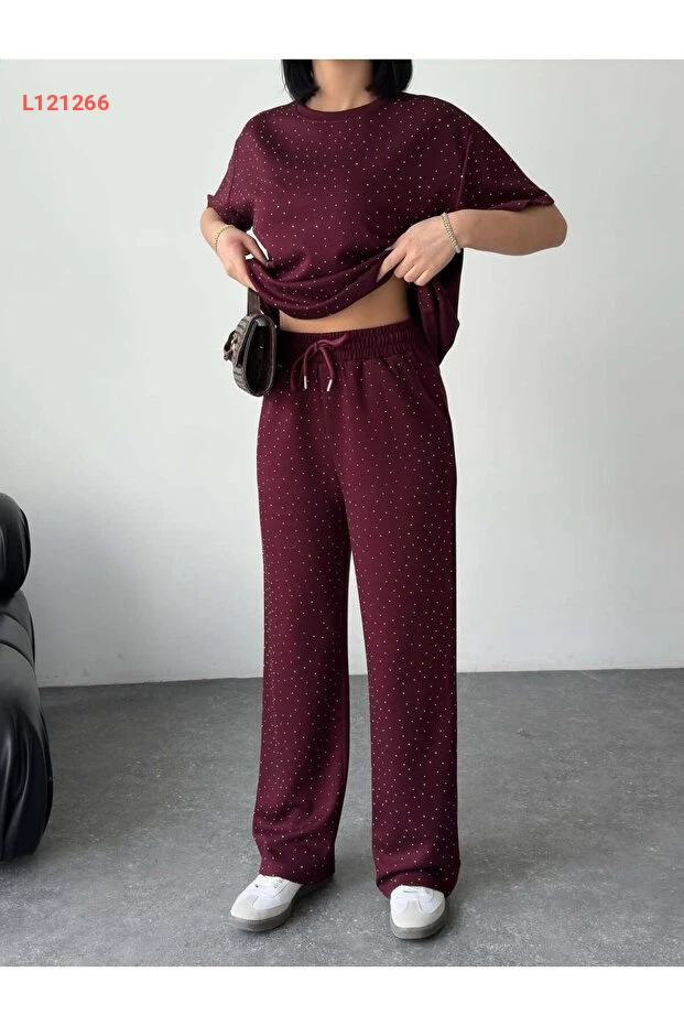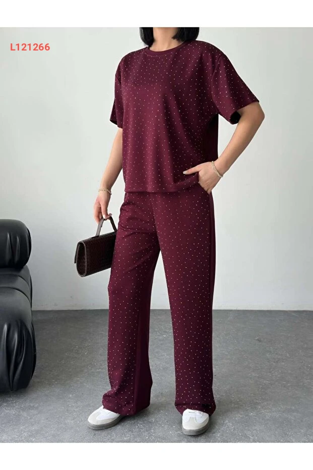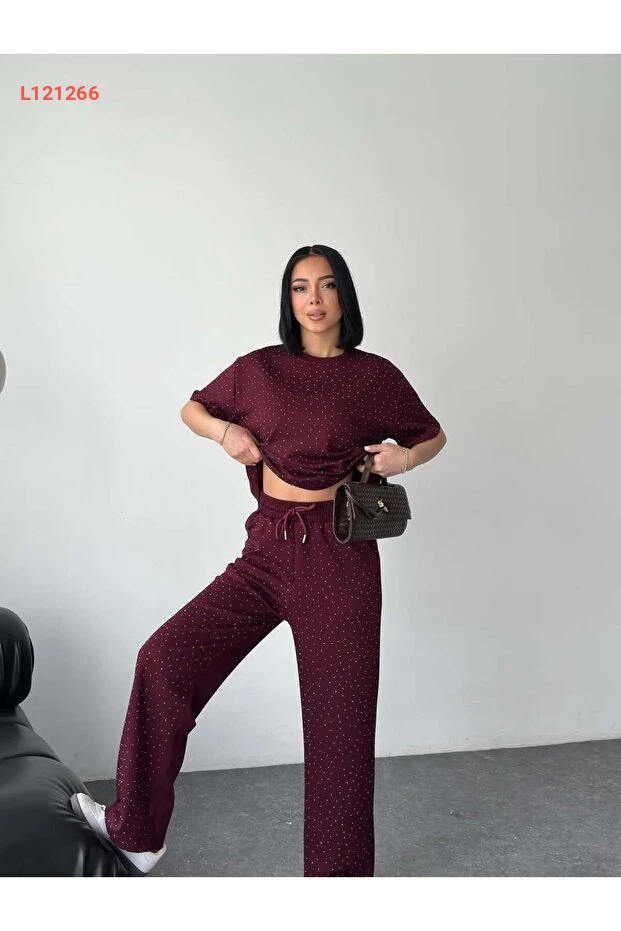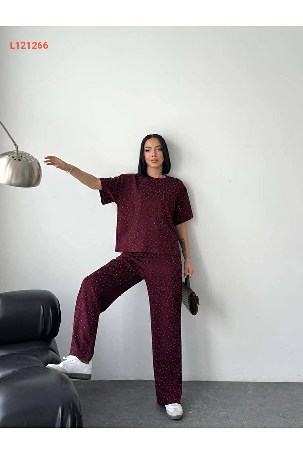 استمتع بإطلالة أنيقة ومريحة مع طقم "Tarzımızbir" المصنوع من قماش Modal الفاخر. يتميز التيشرت ذو الياقة المستديرة بتفاصيل لامعة من الأحجار، مما يضيف لمسة رائعة وعصرية، بينما يوفر التصميم الخفيف المرونة والراحة في جميع الأوقات. ارتدِه في المناسبات اليومية أو أثناء التمارين لتكون دائمًا في قمة التألق!