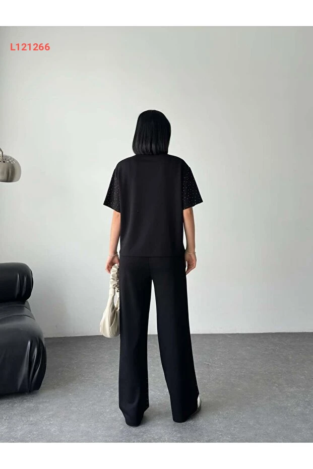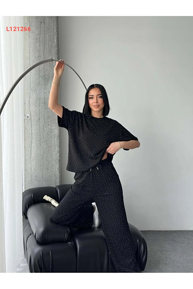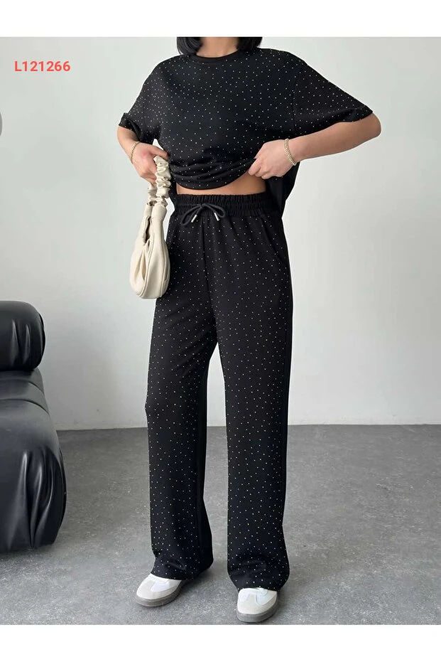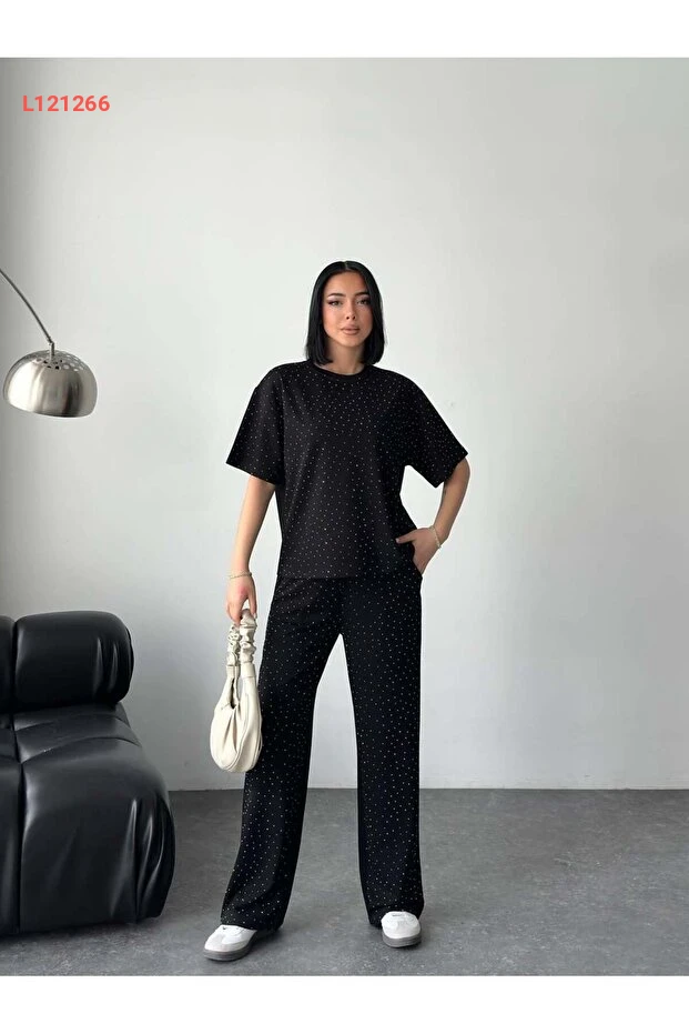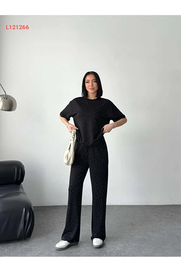 استمتع بأناقتك مع طقم Tarzımızbir، الذي يتكون من تيشيرت بيضوي مدور مزين بالحجارة من قماش المودال الفاخر. يجمع بين الراحة والأناقة، مما يجعله الخيار المثالي لكل الأوقات. ارتدِ هذا الطقم وتمتع بإطلالة مميزة تجمع بين الجاذبية والراحة.
