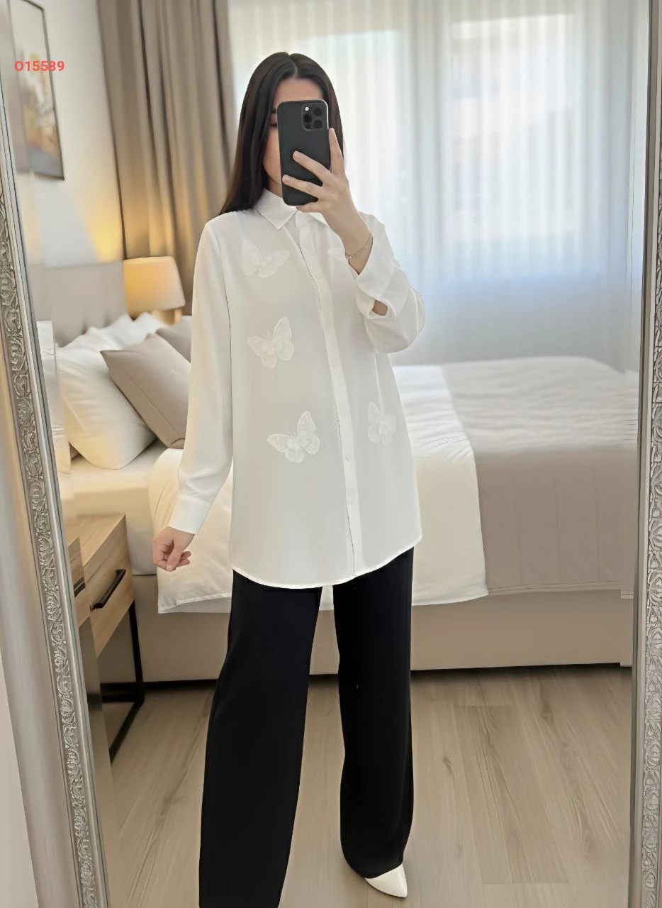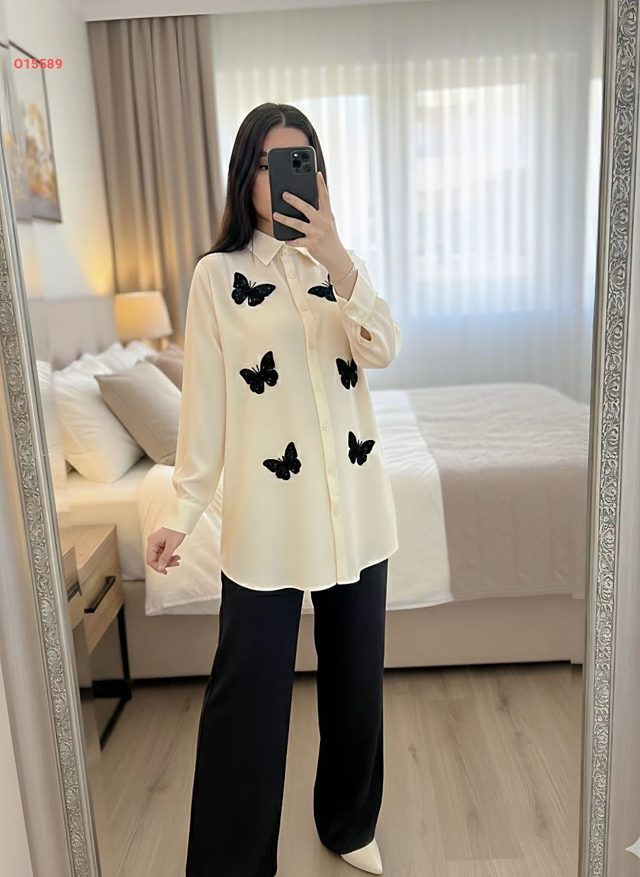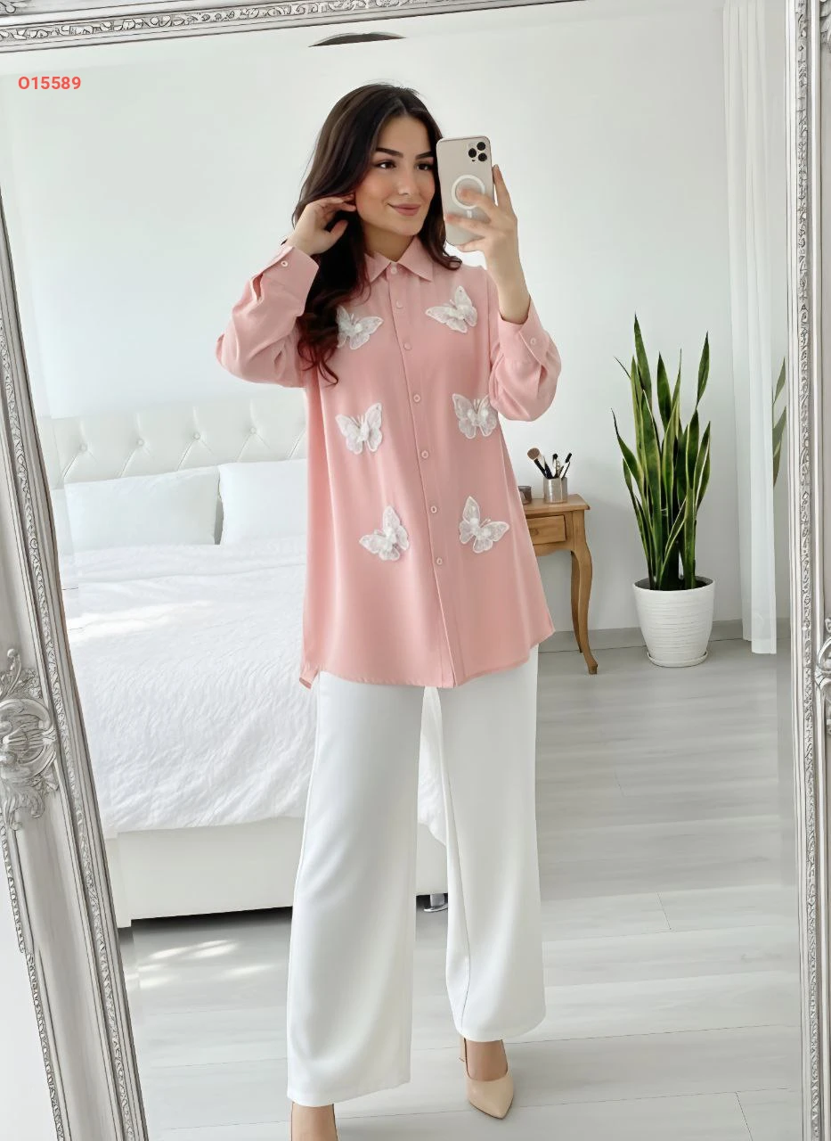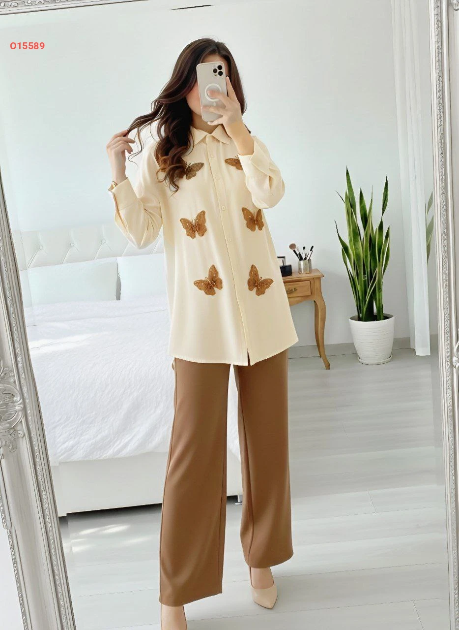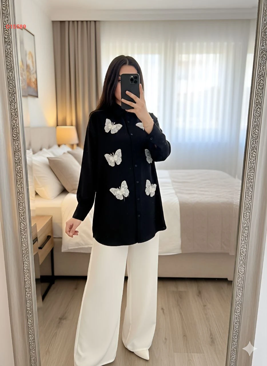 طقم بنطال وقميص مزين فراشات