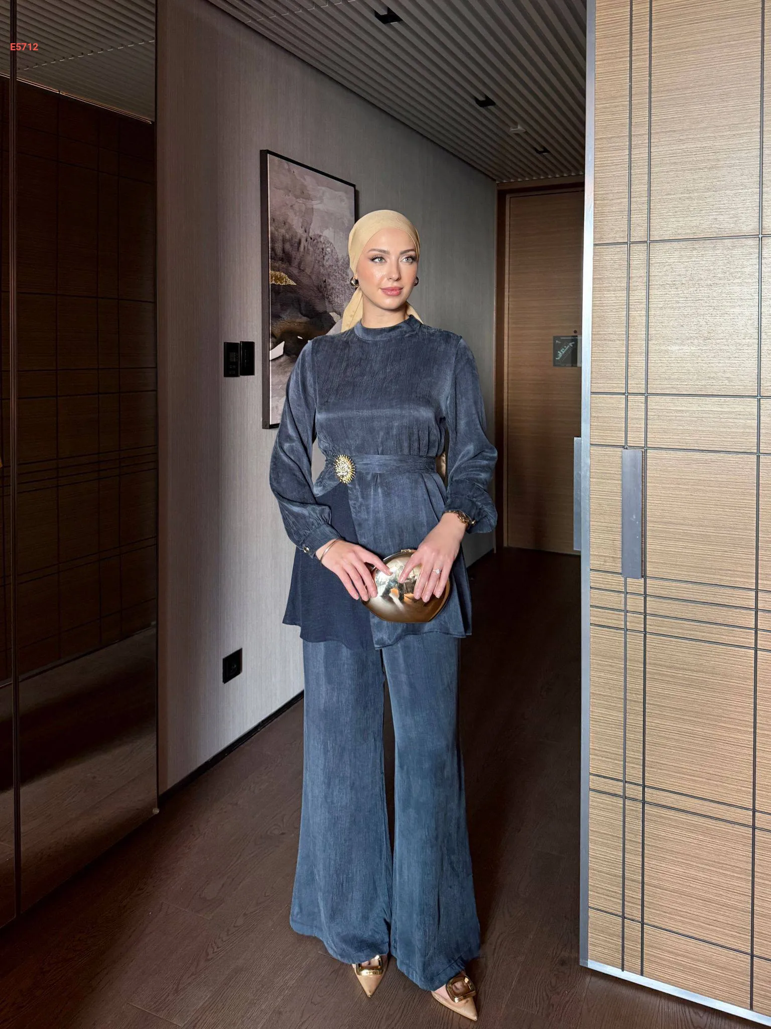 طقم بنطال وتونيك مع زنار ببروش