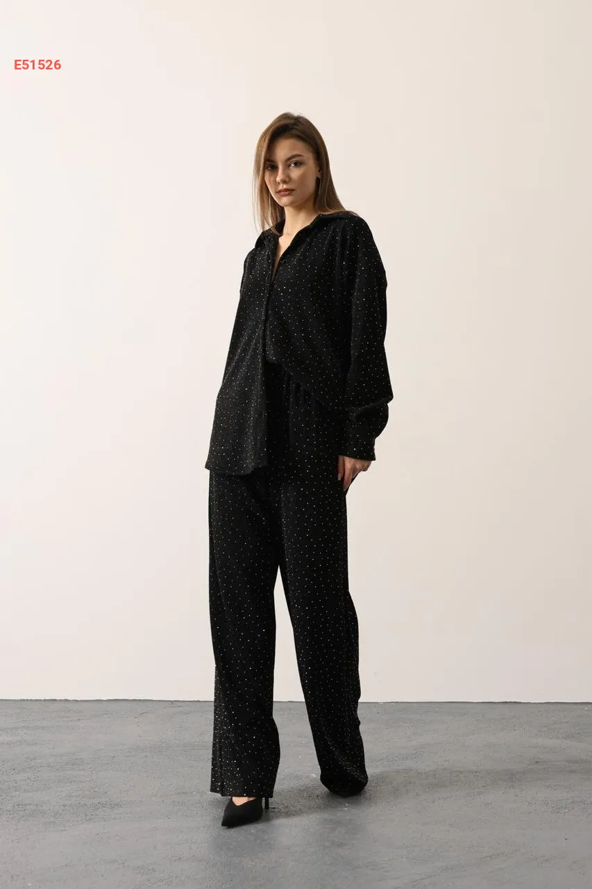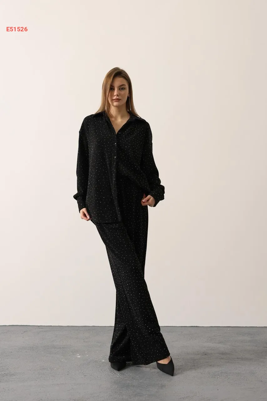 طقم بنطال وقميص بتفاصيل حجرية