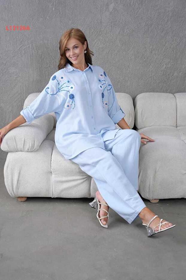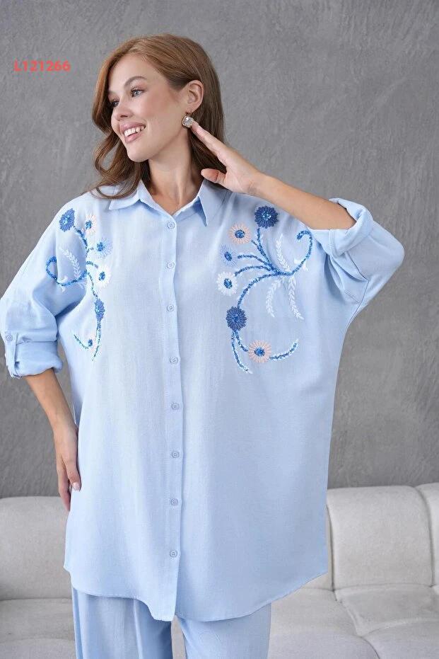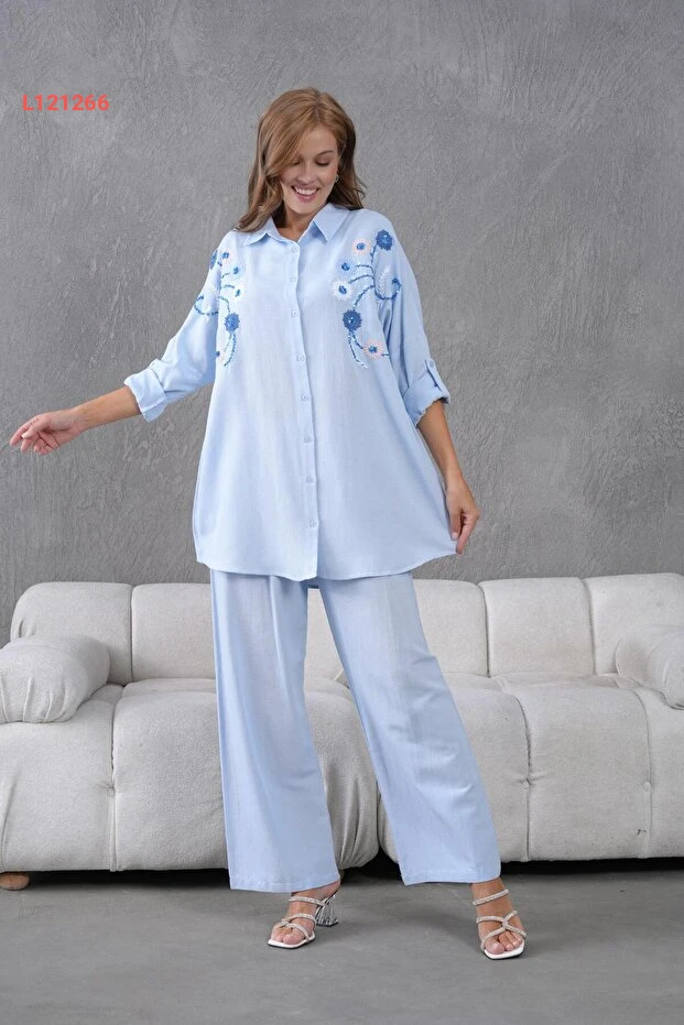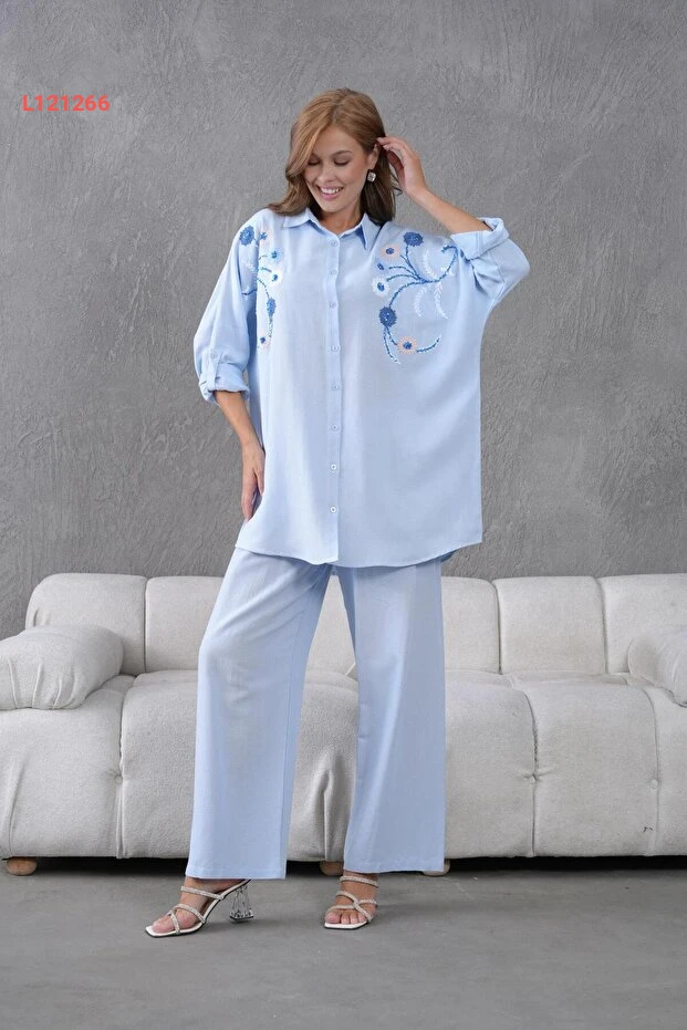 استمتع بالراحة والأناقة مع طقم "BURRASCA" المصنوع من الكتان العالي الجودة، الذي يأتي بتصميم فضفاض يضمن لك حرية الحركة. يجمع هذا الطقم بين التطريز الأنيق والتفاصيل الماسية المتلألئة، مما يجعله الخيار المثالي لإطلالة مميزة في كل المناسبات. ارتدي الثقة والجمال مع كل لمسة!