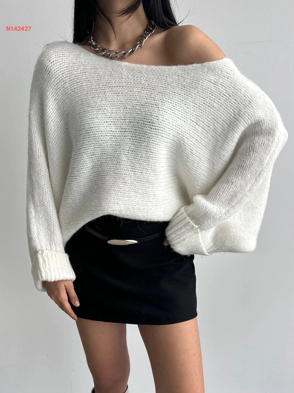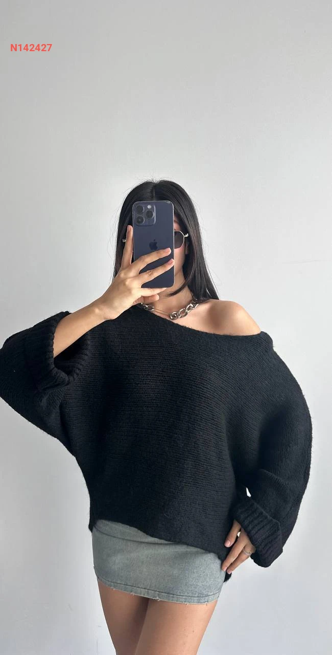 كنزة تريكو واسعة بكتف منسدل