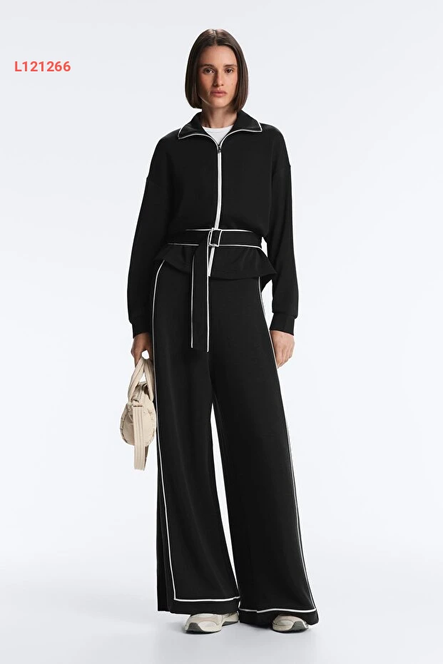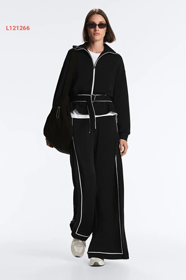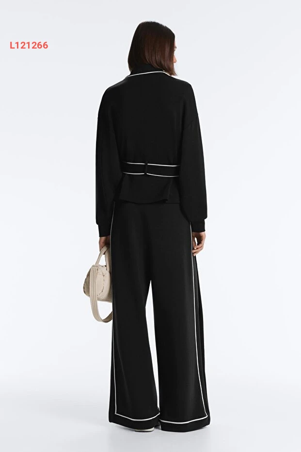 بنطال واسع بلمسة ناعمة مع تفاصيل خطوط متباينة من أويشو